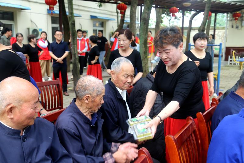 近日,舒城县桃溪镇龙舒村舞蹈队的奶奶妈妈们,在潘士翠的带领下,来到镇敬老院,为老人们献上精心编排的舞蹈,欢庆端午节的到来。舞蹈结束,潘士翠又让舞友们把自费购买的绿豆糕,散发到每一位老人手中。熟悉她的老人们开心地吃着绿豆糕,感受着爱心的温暖。