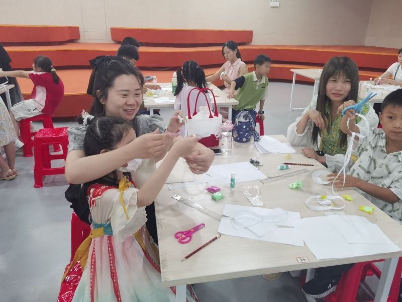 接下来的DIY环节,在老师的指导下,少儿和家长们一起亲手制作了莫比乌斯带。他们分工合作,默契配合,共同探索,通过实际操作加深对拓扑学概念的理解,从中培养了他们的动手能力、观察力和创造力。