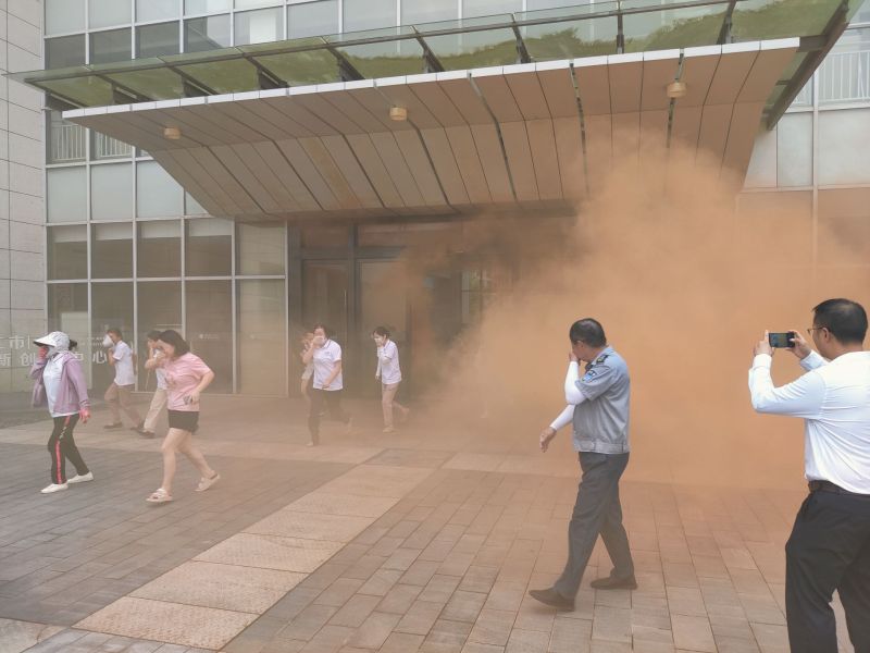 随后,消防宣传员向全体职工讲解了各类消防器材装备的用途、使用方法等知识。“一旦发生火灾事故,一定要沉着冷静,有序组织员工疏散逃生,就近寻找身边的消防器材第一时间处置,同时拨打119火警电话。下面我来教大家常用灭火器和消火栓的使用方法。”消防宣传员一边讲解,一边组织单位职工进行灭火实际操作。最后,按照既定灾情设定开展应急演练,模拟中心大厅及办公楼发生灾情,单位负责人立即拉响广播及警报声进行提示,全体职工用湿毛巾捂住嘴巴,弯腰,消防救援人员对其进行安全疏散,有序按照既定路线逃生,安全到达指定地点集合。