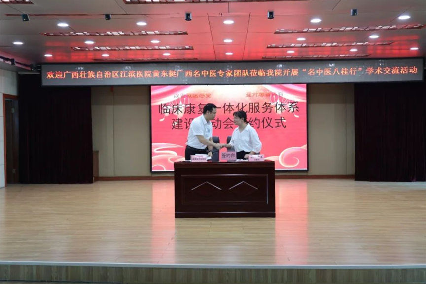 6月7日,鹿寨县中医医院在南院门诊楼5楼会议室举行广西名中医黄东挺专家团队“名中医八桂行”暨中西医结合旗舰科室联合义诊活动暨临床康复一体化服务体系建设启动会签约仪式,以加大中医药文化保护传承和传播的推广力度,推动中医药文化创造性转化、创新性发展。