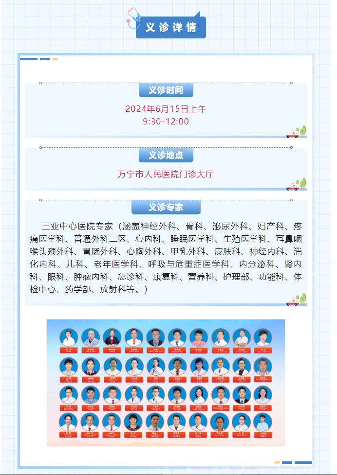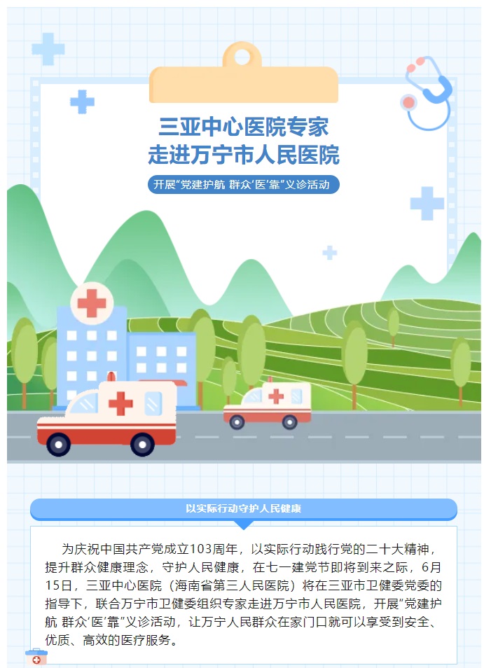 【义诊预告】琼南最早、综合实力最强的三甲医院6月15日走进万宁市人民医院开展义诊活动