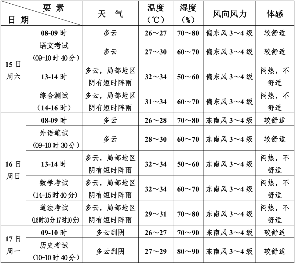 中考在即,天气信息请查收