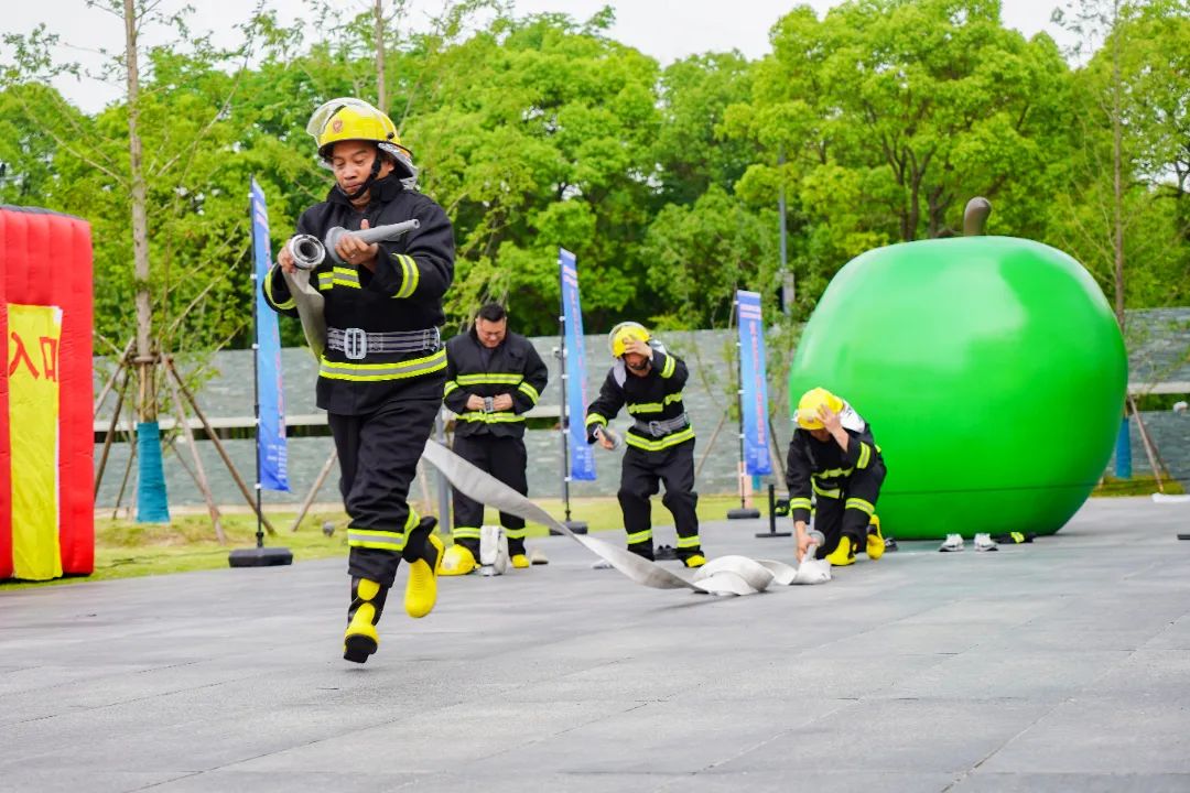 现场,来自嘉定区文化和旅游局和各街镇的13支队伍还展开了一场消防技能大比武。参赛队员们熟练地穿上消防服,戴上头盔和面罩,整个过程既迅速又标准,展现出了极高的团结协作能力和应变处突能力。
