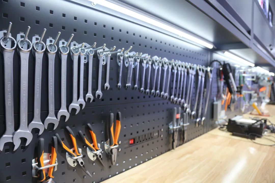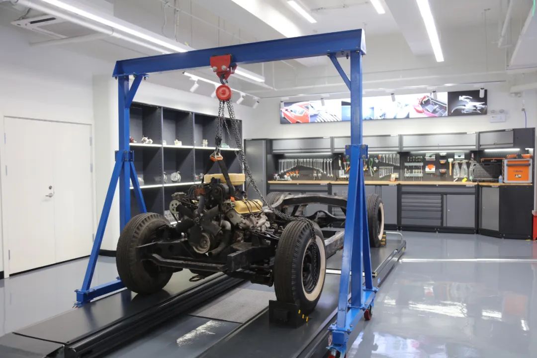 走进这座占地300多平方米的工作室,仿佛置身于一个“神奇工坊”。车辆分解拆装区、车辆举升功能区、设施设备操作区等分区明确,各种维修工具、汽车零件一应俱全。