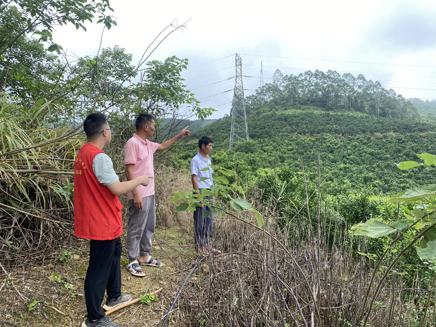 ▲镇干部到地灾隐患点查看现场情况