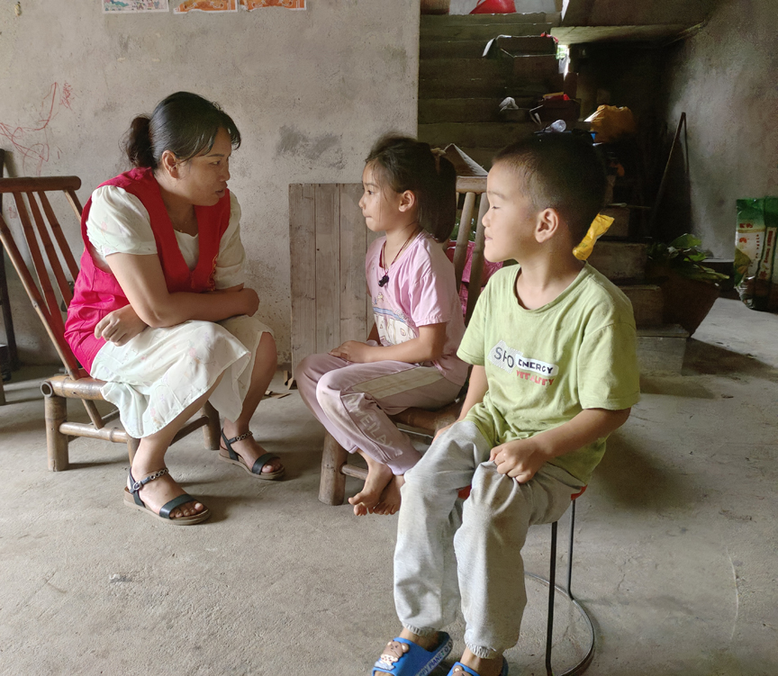 ▲志愿者入户宣传防汛注意事项,叮嘱小朋友不要到漫水处玩耍
