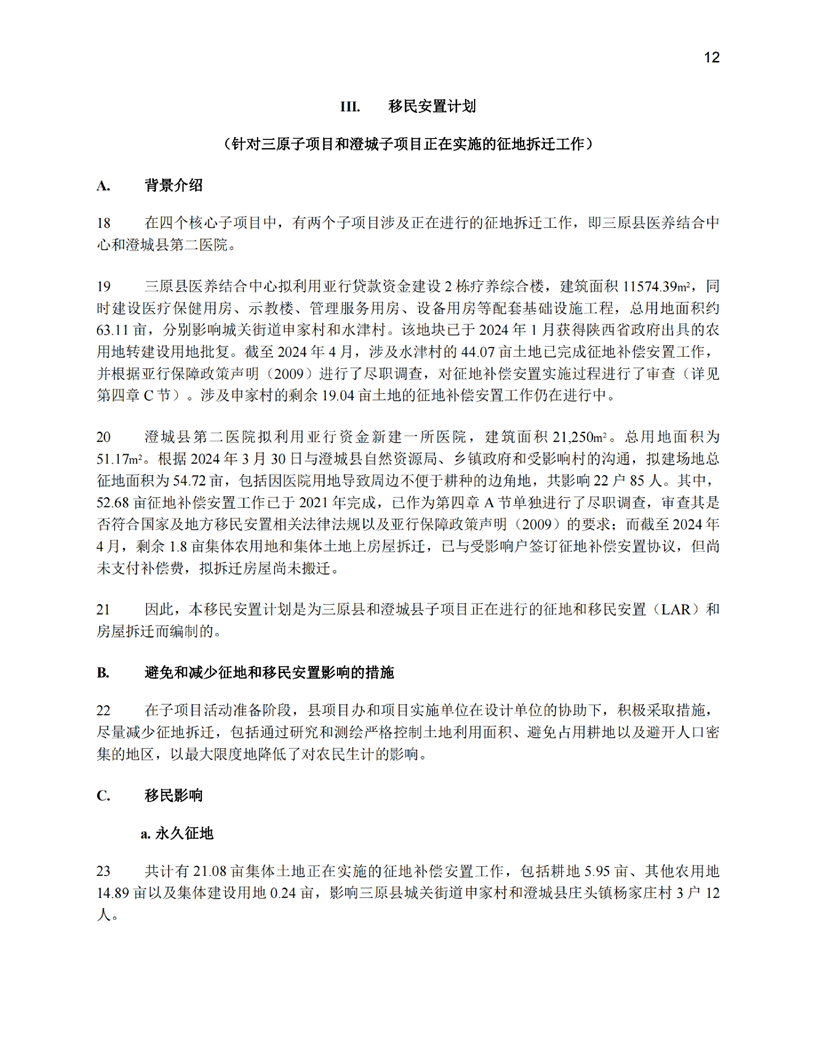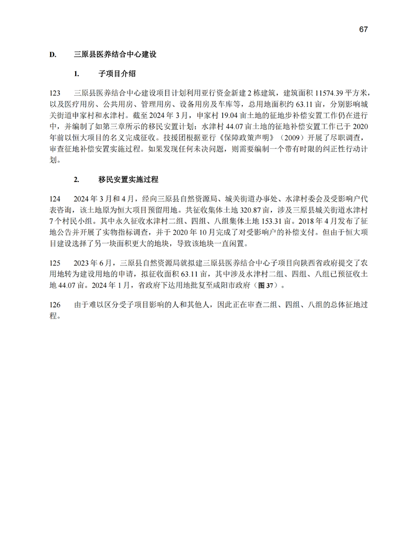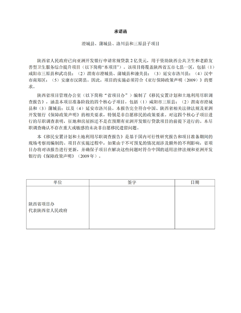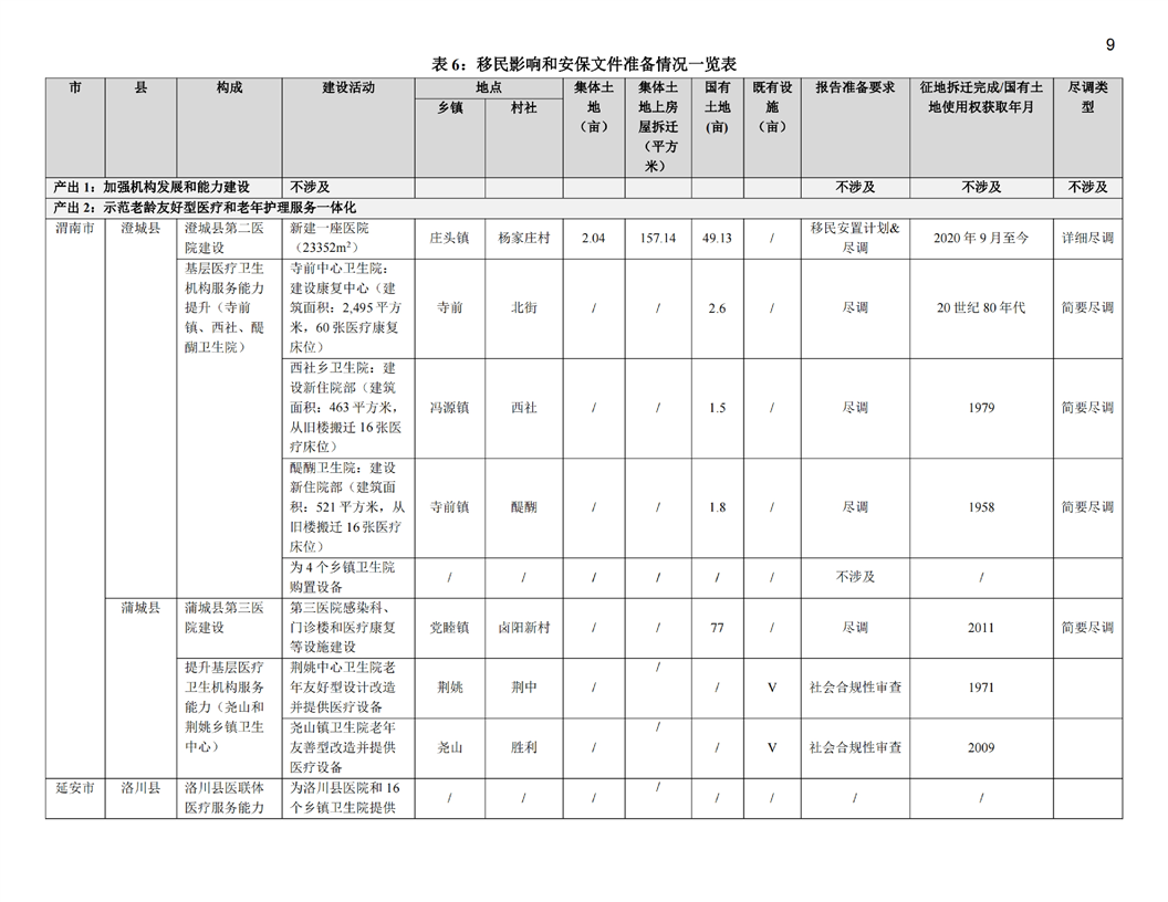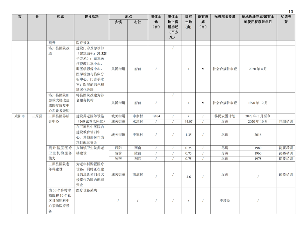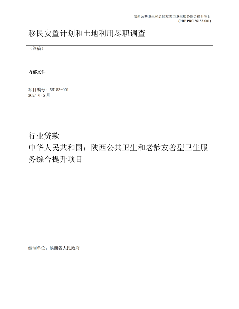 陕西公共卫生和老龄友善型卫生服务综合提升项目(移民安置计划和土地利用尽职调查)
