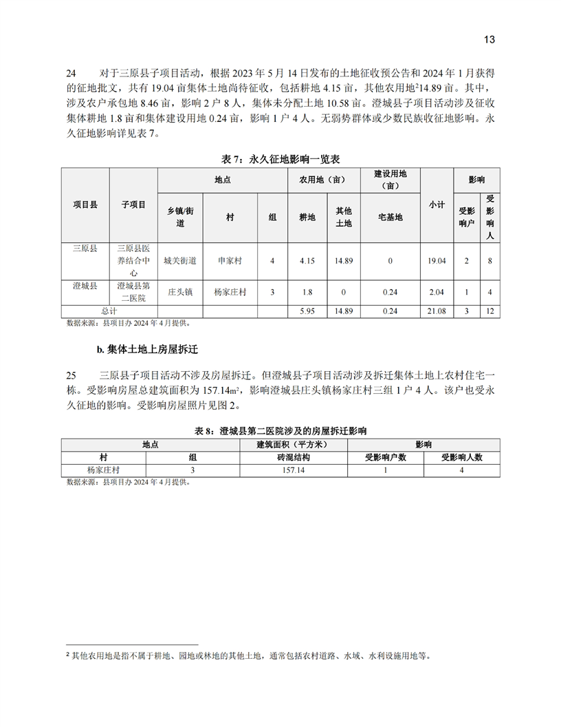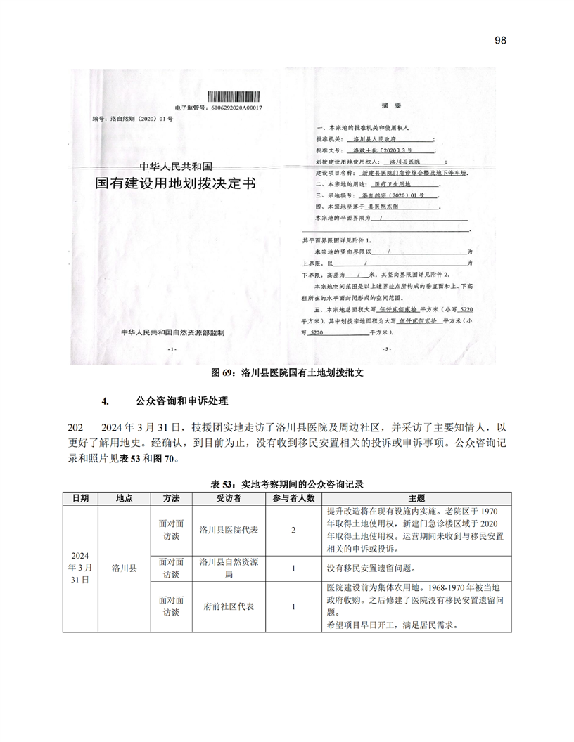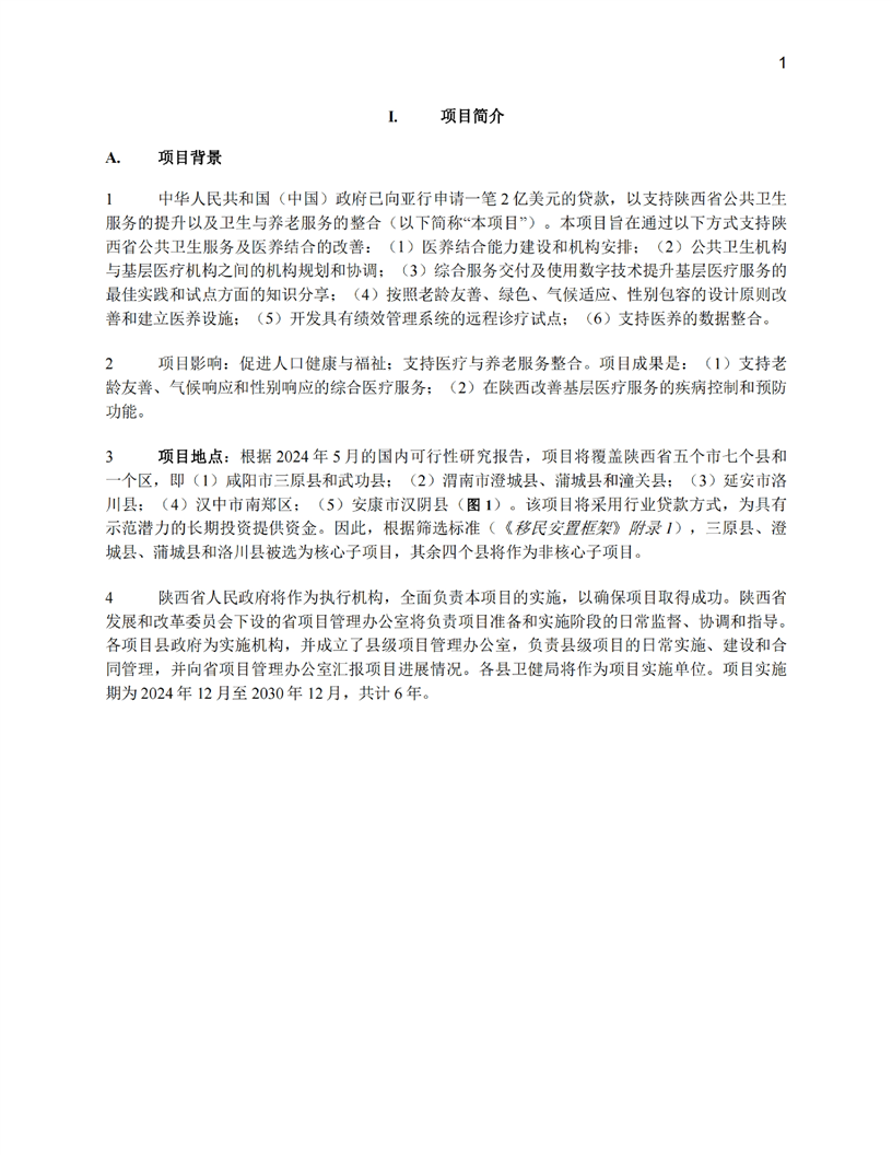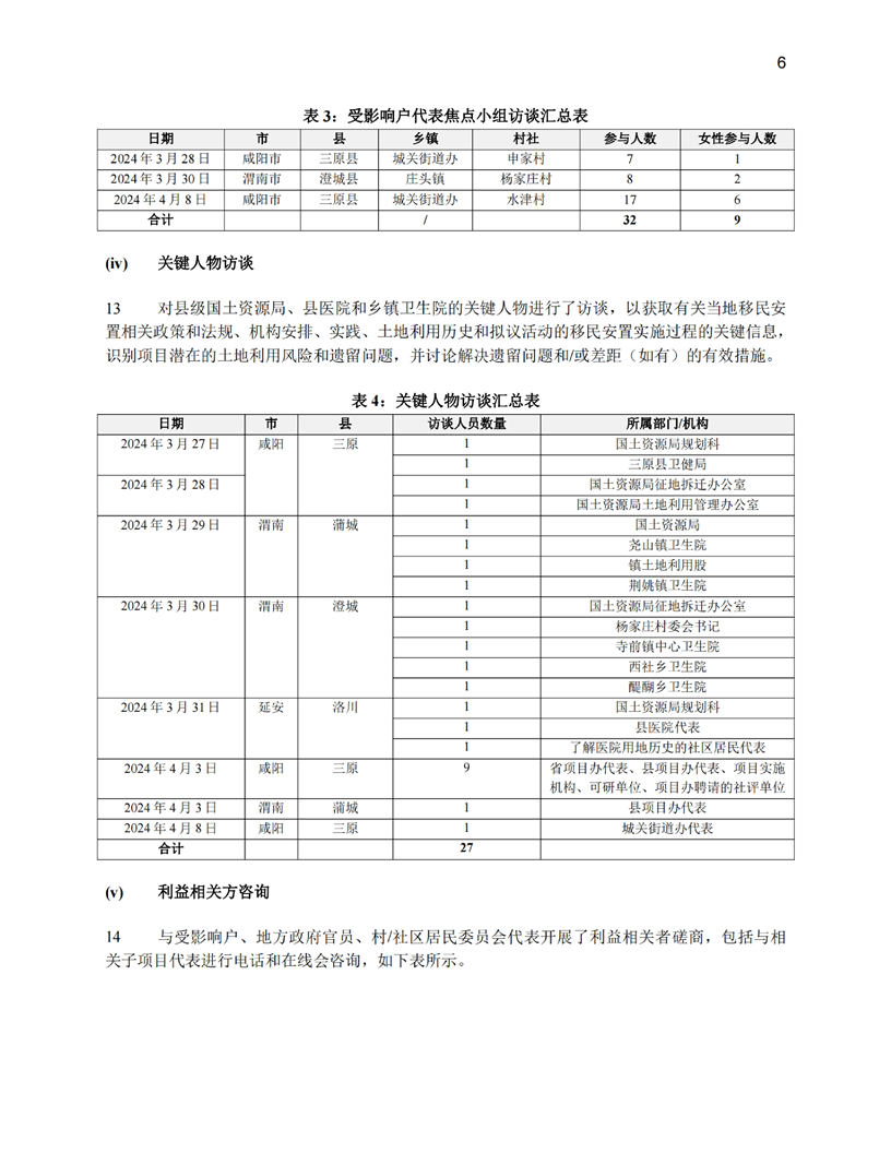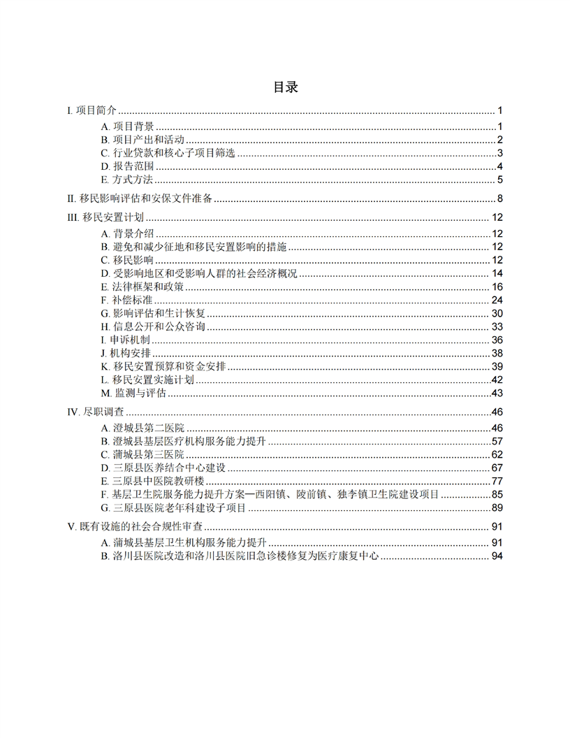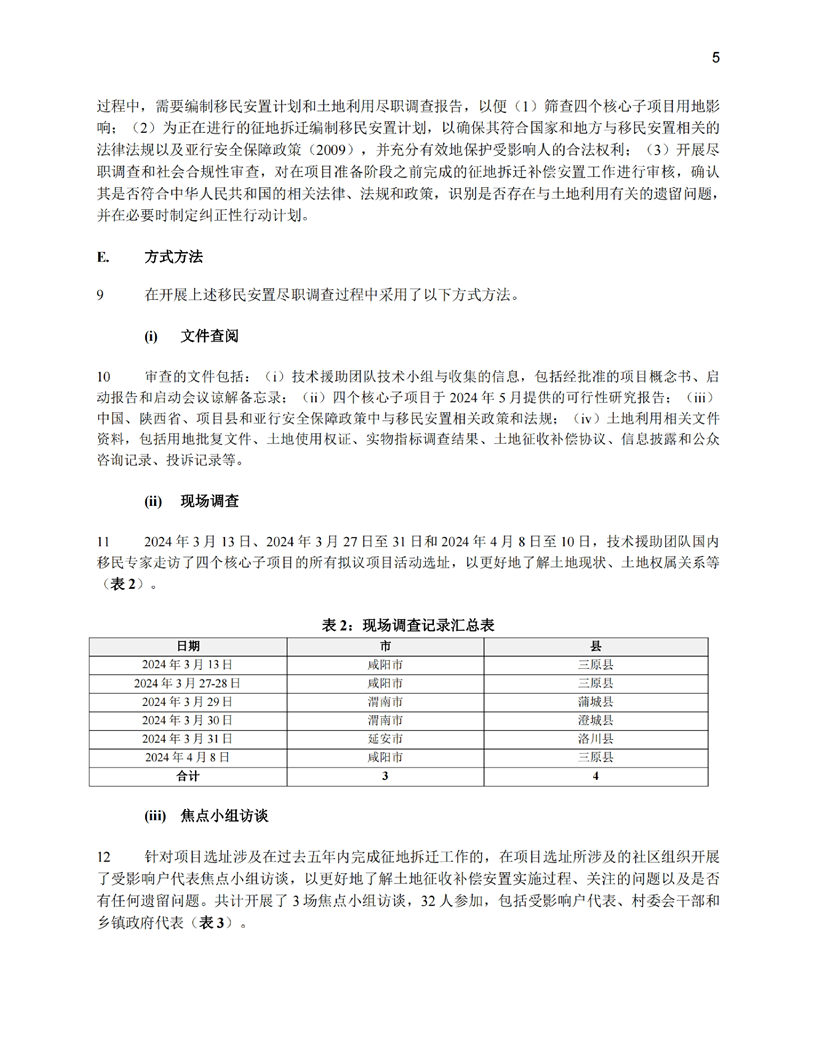 陕西公共卫生和老龄友善型卫生服务综合提升项目(移民安置计划和土地利用尽职调查)