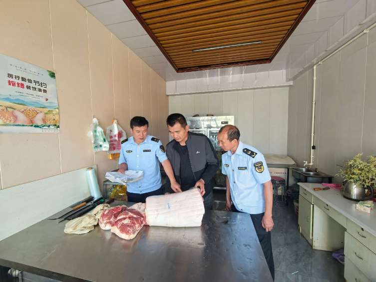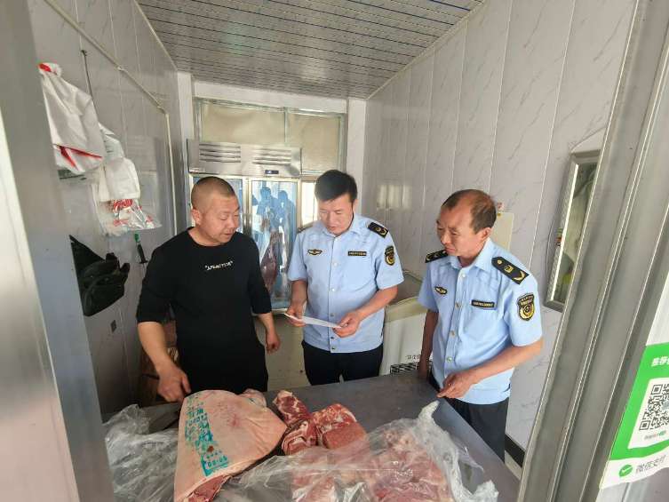 执法人员重点针对辖区内的肉制品加工小作坊、农贸市场、商超、从事冷链食品经营户、餐饮服务单位等市场主体开展了检查。全面检查经营主体资格的合法性,查看肉品来源是否正规,是否严格落实索证索票、进货查验等制度。重点检查生鲜肉表面是否有动物检验检疫、肉品品质检验合格印章、证明;检查经营的肉品是否新鲜,是否有异味、腐败味、色泽不正常等情况;检查贮存场所是否配备相应的冷藏、冷冻设施,是否符合冷藏、冷冻的温度要求,是否定期对冷藏、冷冻设施进行清洁消毒、维护保养;检查储存鲜肉的场所环境卫生情况,是否配备必要的防蝇、防鼠、防尘设施。同时,执法人员还向经营者宣传讲解了《中华人民共和国食品安全法》等法律法规,引导经营者进一步提高责任意识和安全意识。至目前,共出动执法人员24人次,检查食品经营业户16户次,对发现的不规范的问题及时督促整改,没有发现严重违法违规经营行为。