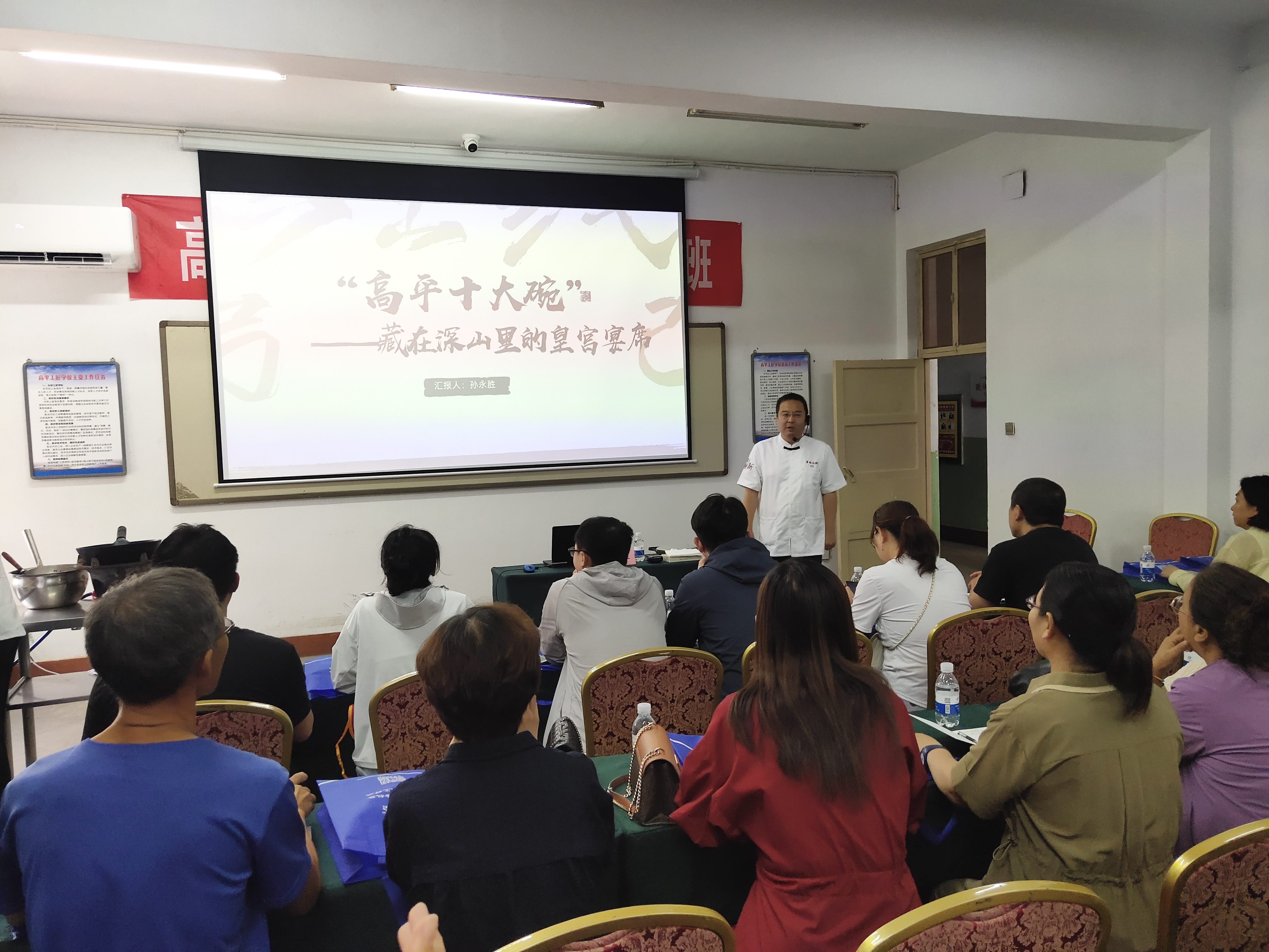 本次培训特邀请晋城市劳动模范、晋城工匠、山西省劳模创新工作室带头人、“高平十大碗”山西省非物质文化遗产传承人、中国烹饪大师获得者、高平市翠岭茶楼经理孙永胜授课,孙老师以其深厚的专业素养,为学员讲解了“高平十大碗”的历史渊源、特点、食材、现状、传承与创新等理论知识,还通过与学员互动、实操为大家呈现了“十大碗”制作流程,可谓一场知识兼美味的盛宴。