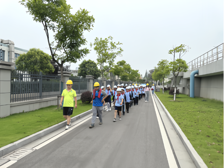 活动当天,专业技术人员引导师生一行参观了污水处理的各个环节。从粗格栅、细格栅,到沉淀池、生物处理池,再到最后的消毒池,工作人员详细讲解了污水处理的基本知识,包括污水的来源、处理过程以及最终的排放标准,揭开了污水变清流的神秘面纱,孩子们听得津津有味,不时提出各种问题。污水在精心设计的处理流程下重获新生,这不仅是水质的净化之旅,更是心灵的一次绿色觉醒。