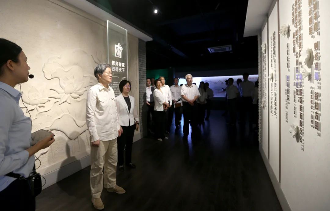 区政府党组、区政府机关党组、区府办党支部还前往嘉定区党风廉政教育基地参观学习。嘉定区党风廉政教育基地以全面从严治党为主题,以坚定信仰、初心传承为脉络,设“不忘初心、牢记使命”“修身齐家、政德天下”“从严治党、永远奋斗”三个篇章,运用图文结合、全息投影、互动多媒体等先进展示手段,重点展现极具嘉定特色的廉政文化建设。