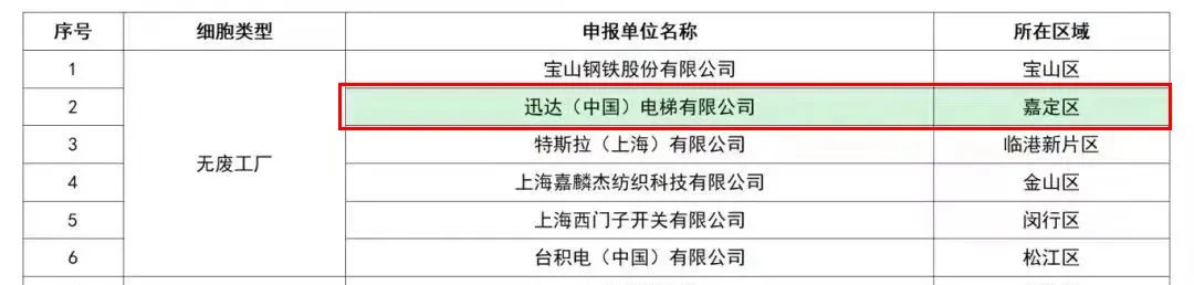 近日,上海市2024年度市级“无废细胞”名单公布,其中,位于嘉定工业区的迅达(中国)电梯有限公司榜上有名,成为全区唯一入选的“无废工厂”。