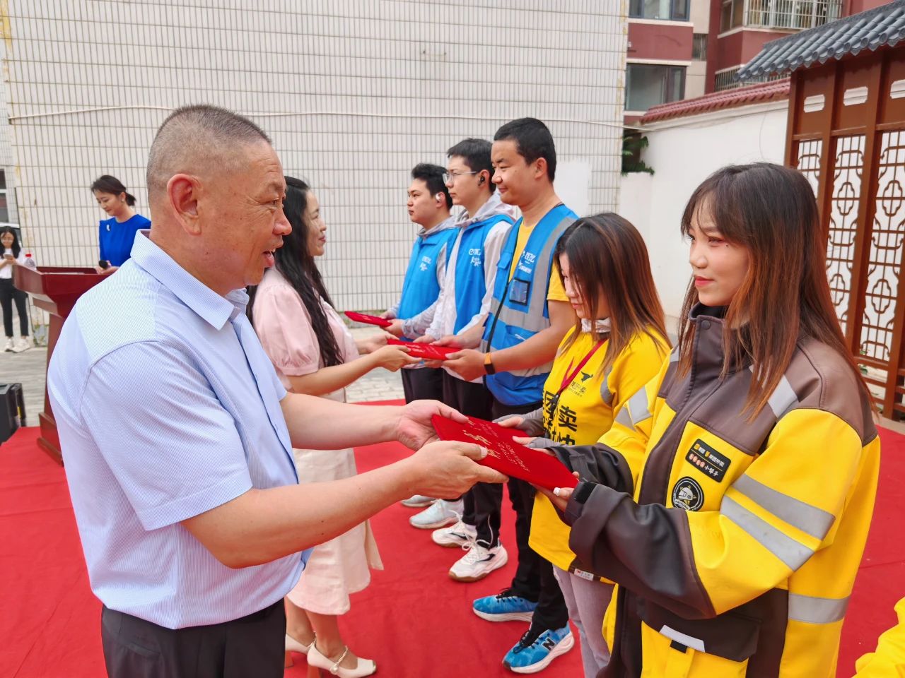 活动现场,为增聘的20名“两新”群体担任“社区兼职网格员”颁发聘书,向60名“两新”群体发放暖“新”大礼包,里面装有政策服务指南、小风扇、冰袖等贴心物品,并向“两新”群体征集微心愿,在炎炎夏日为“两新”群体传递清凉与关爱,让“两新”群体体验由“送货人”变“收货人”的温馨感受。