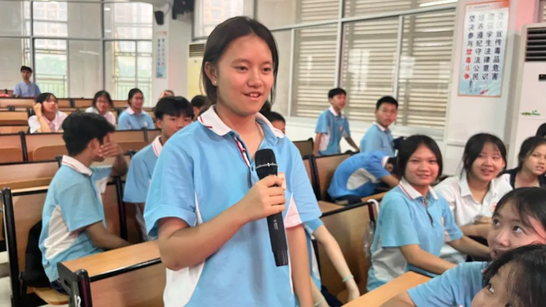 鹿寨县初级实验中学学生秦烨玲说:“我们要从小树立正确的价值观,拒绝毒品,为自己的未来负责。”