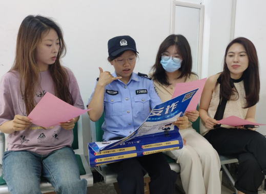 民警有针对性地为群众讲解刷单返利、冒充亲友、游戏装备等典型诈骗案例,让群众在等待办事过程中既能学习反诈知识,又让等待的时间显得不漫长。在市民办理完业务后,民警主动与市民互动,面对面向市民讲解“国家反诈中心”App的使用方法。