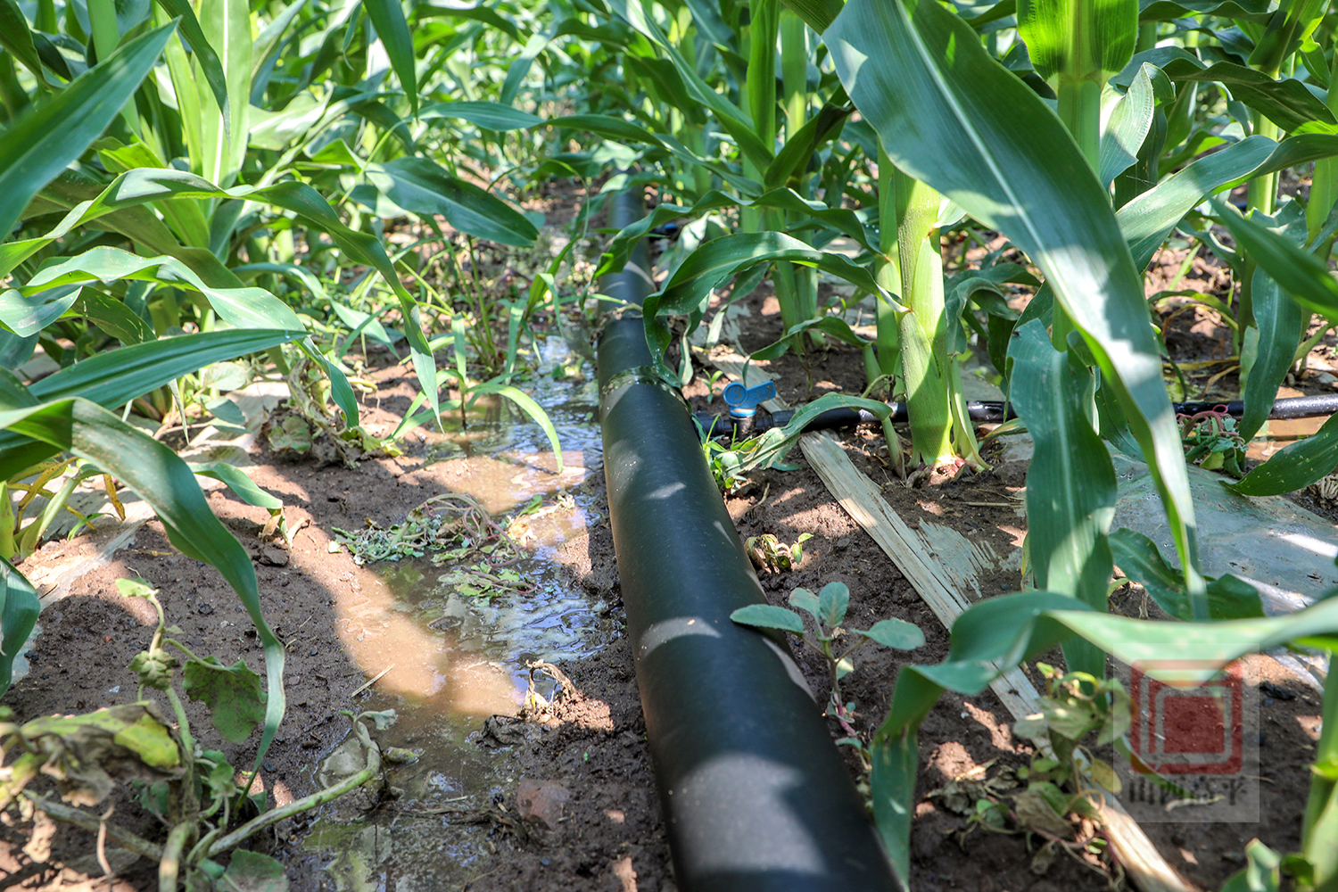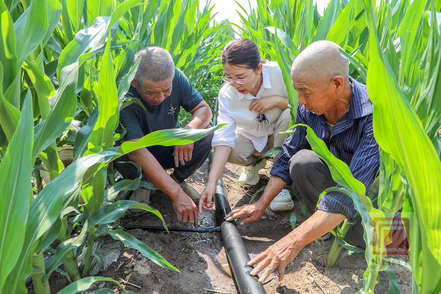 来到国营良种场玉米种植基地,一条条黑色滴灌带沿着玉米地均匀铺开,工作人员陈健打开阀门,将场内自备井的水通过水泵输送至滴灌带,给玉米进行精准滴灌,有效缓解旱情。