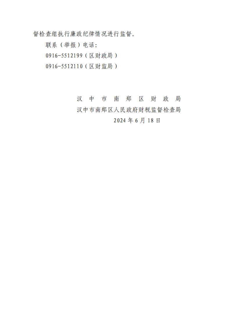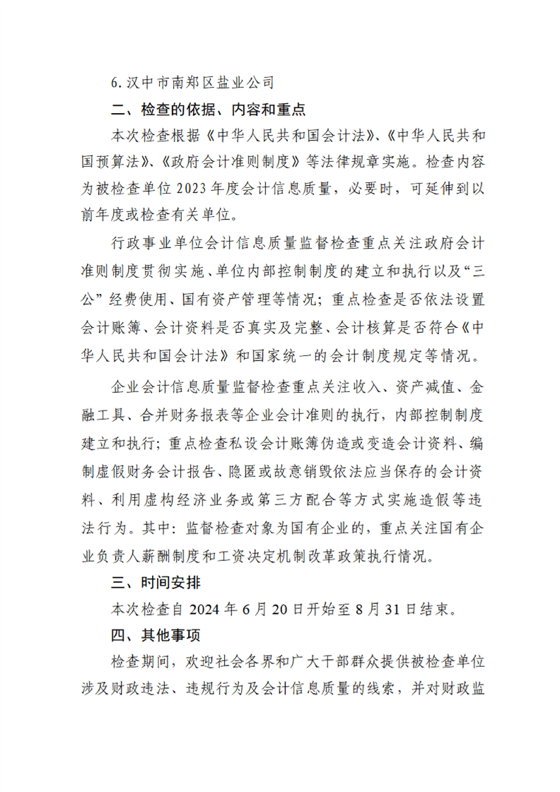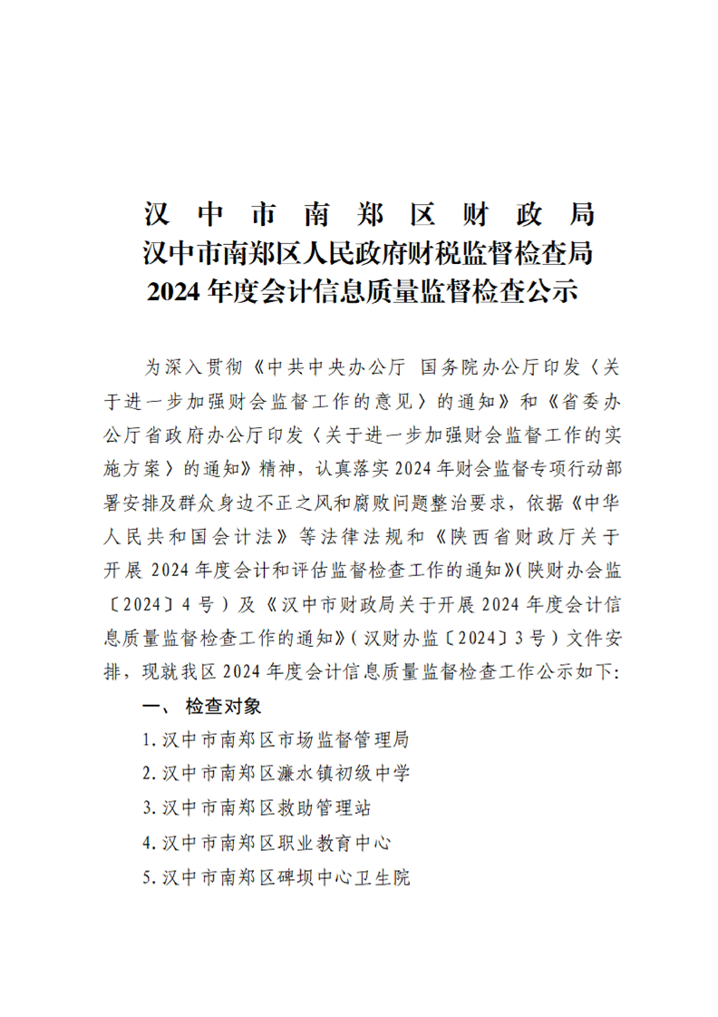 汉中市南郑区财政局汉中市南郑区人民政府财税监督检查局2024年度会计信息质量监督检查公示