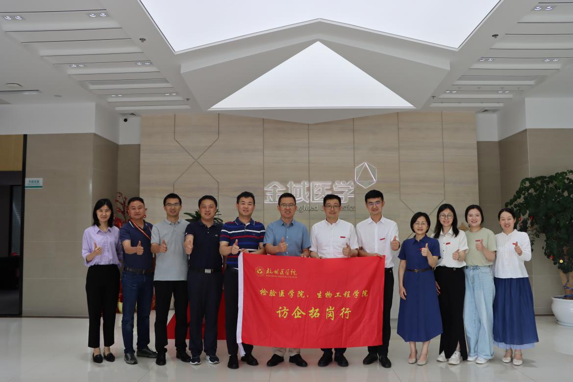 为贯彻落实党中央、国务院关于高校毕业生就业工作的决策部署,进一步深化校企合作,促进毕业生更加充分更高质量就业,6月17日,校党委委员、副校长徐骁率队赴杭州金域医学检验实验室有限公司开展“访企拓岗促就业”专项行动,检验医学院、生物工程学院领导班子陪同走访。金域集团副总裁侯生根携团队热情接待。