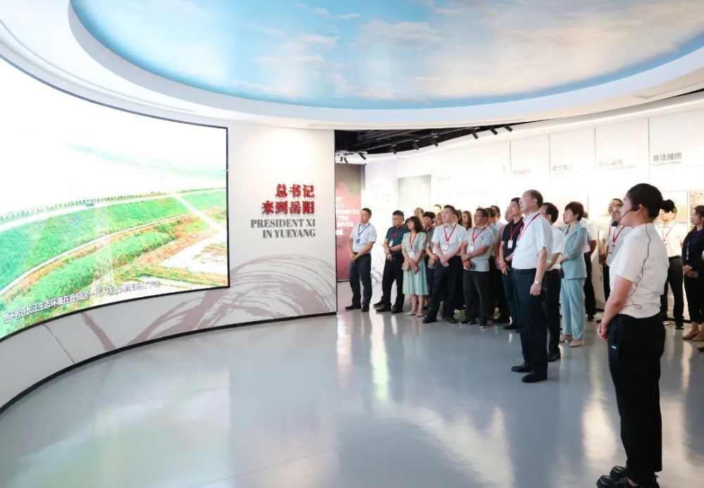 雨后的江豚湾生机盎然,绿草茵茵,湿地芦苇萋萋,水中江豚腾跃,一派勃勃生机的景象。来到华龙码头、“守护好一江碧水”首倡地展陈馆等地,考察组一行观摩了水利特岗生“沿着总书记的足迹”现场教学点和“守护好一江碧水”实践教学基地。