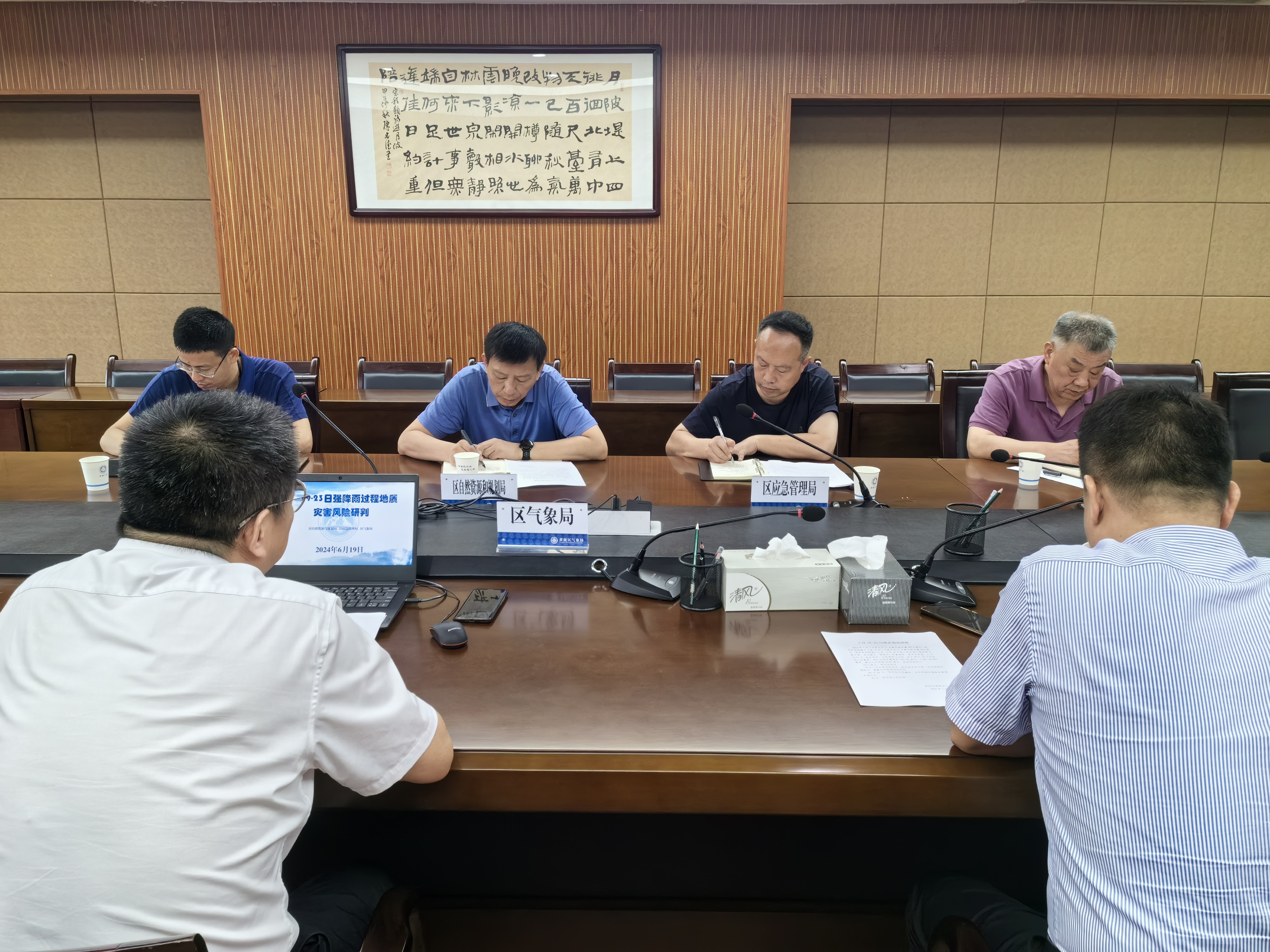 区气象局首先就此次强降水过程预报情况进行通报,建议相关部门密切关注气象灾害预警,加强地质灾害易发区、地质灾害点的巡查工作;区自然资源规划局接着将全区地质灾害隐患点、历史受灾等情况进行交流;区应急管理局对如何充分发挥气象信息员作用,广泛传播预报预警信息,并收集相关信息进行讨论。