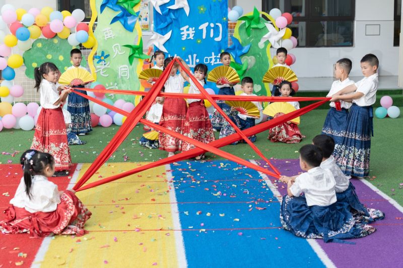 活动中,孩子们表达出对人生中第一次集体生活的留恋,用精彩的节目向老师表达依恋、感激之情,用朗诵的形式表达对幼儿园的感恩之情。