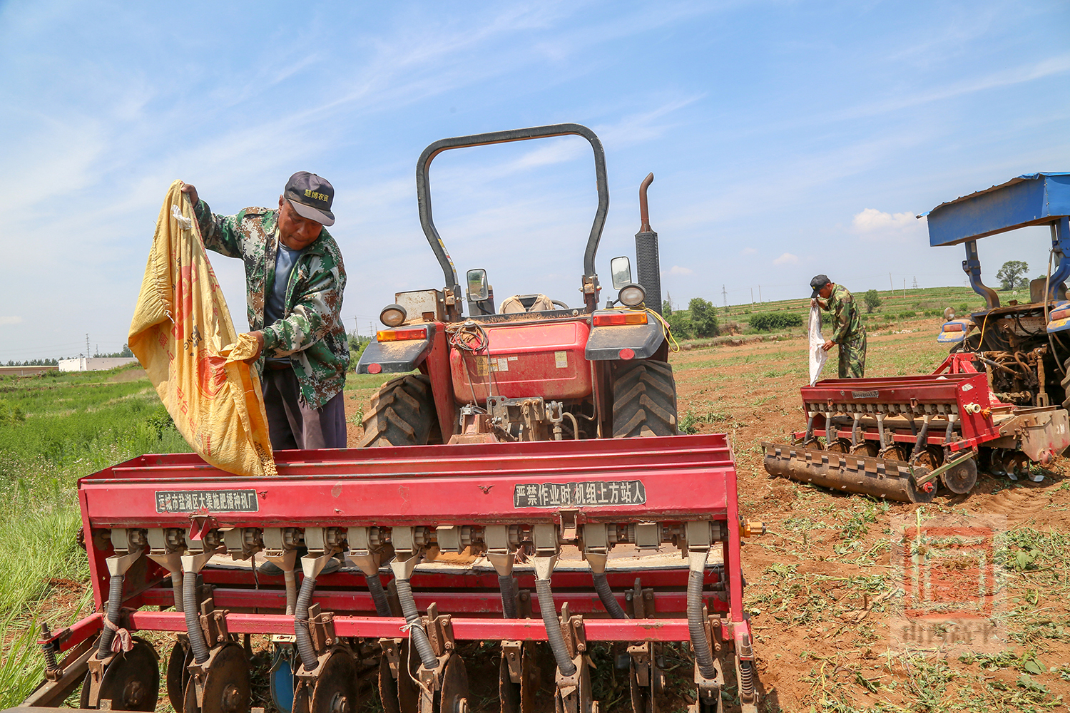 来到马村镇康营村的田间地头,一派火热的夏忙景象。伴着机器的轰鸣声,两台大豆播种机来回穿梭,将一粒粒饱满的大豆种子播撒进土里,种下秋收的希望。
