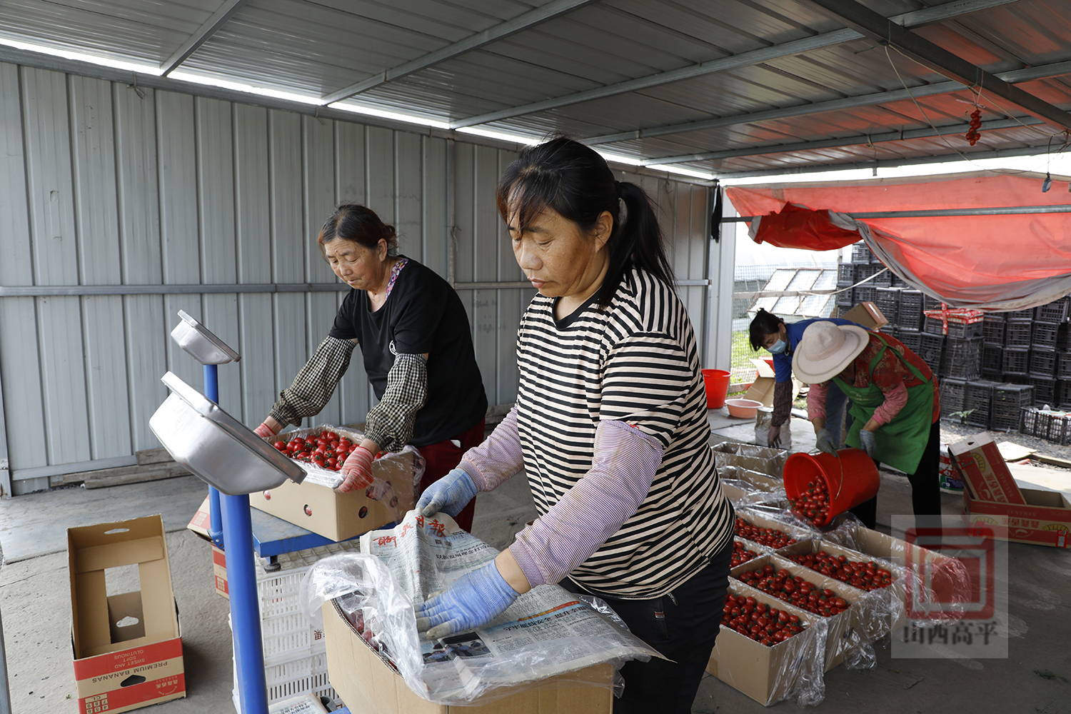 盛夏时节,北城街街道铺上村的圣女果种植基地迎来收获季,村民们抢抓农时,在种植大棚内忙碌地采摘、分拣、装箱、称重,准备销往周边及外地市场。