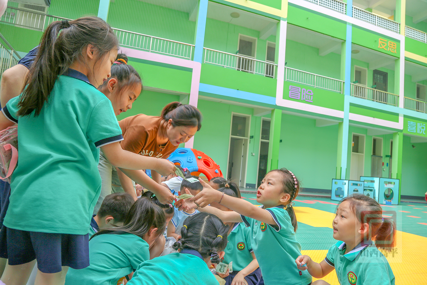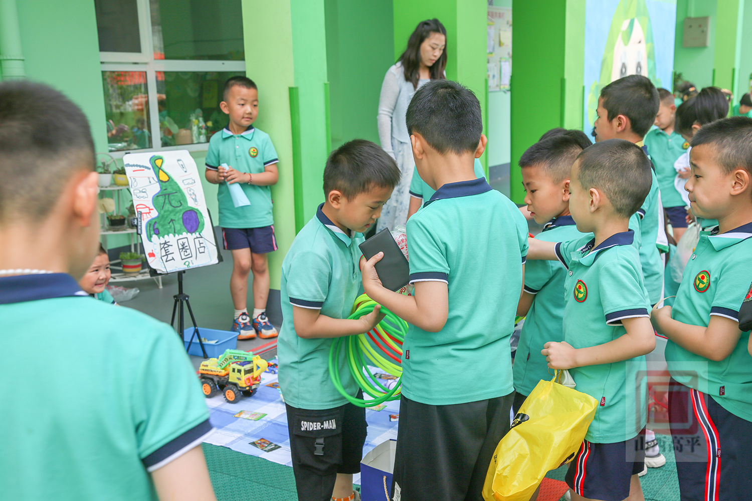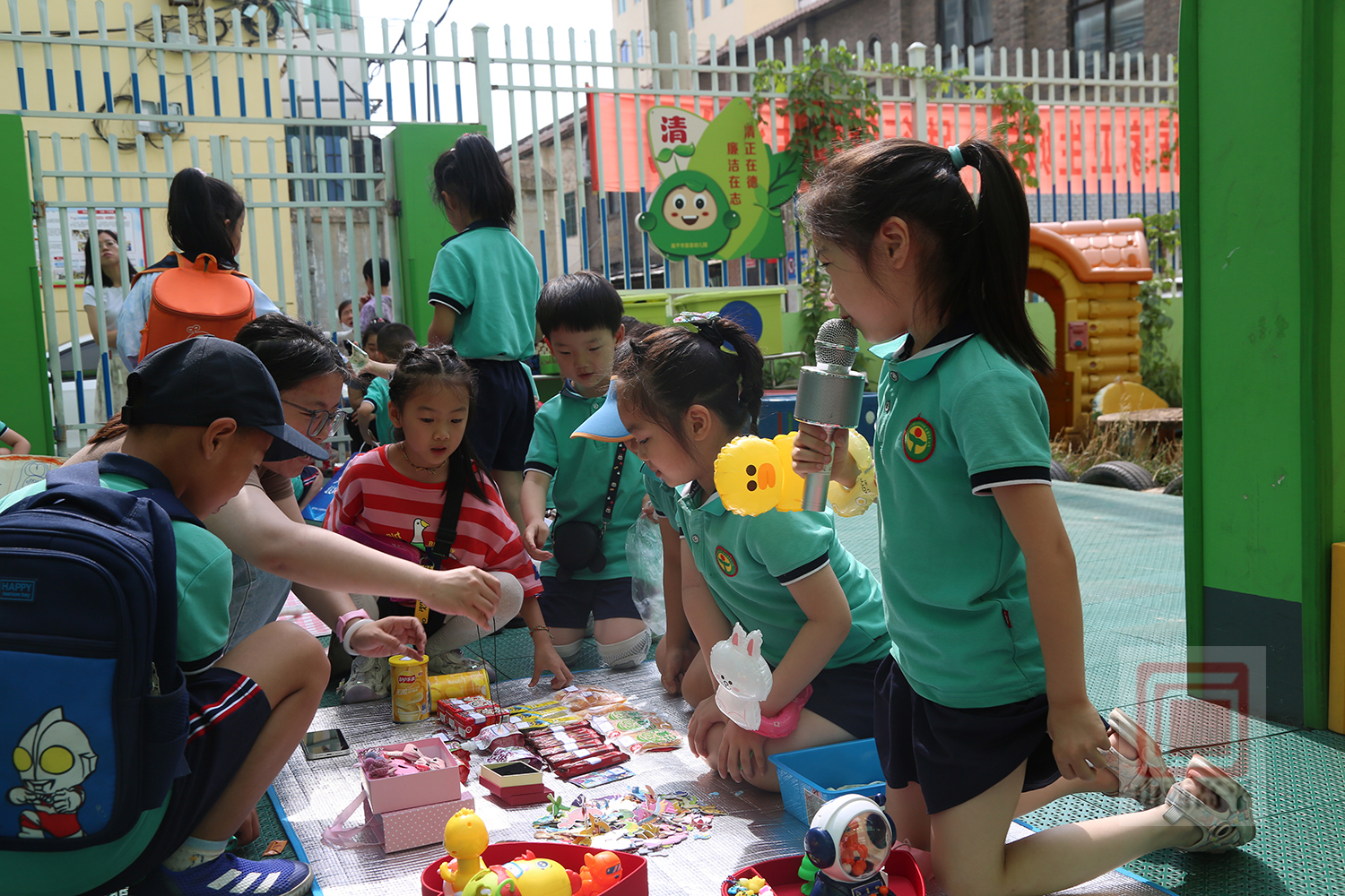 大胆介绍物品的功能玩法、价格,热闹的讨价还价,快乐认真的收钱算账……在每一个摊位前,“小摊主”们团结合作、卖力吆喝,小顾客们则拿出钱,购买着心仪的玩具、零食。