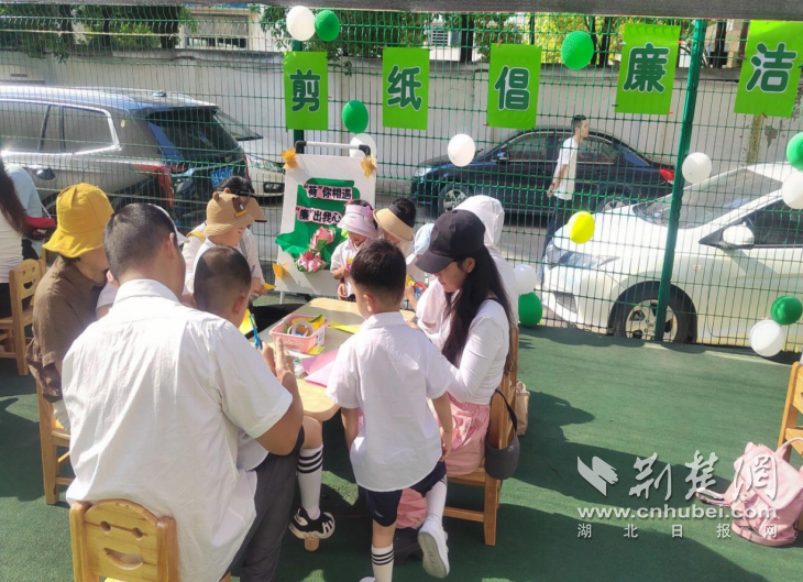 剪纸作为中国传统的民间艺术,具有深厚的文化内涵和艺术价值。吴家山街片区幼儿园将中国传统剪纸艺术与幼儿园清廉校园文化建设相结合,开展了以“剪纸倡廉洁,巧手画清风”为主题的亲子剪纸活动。