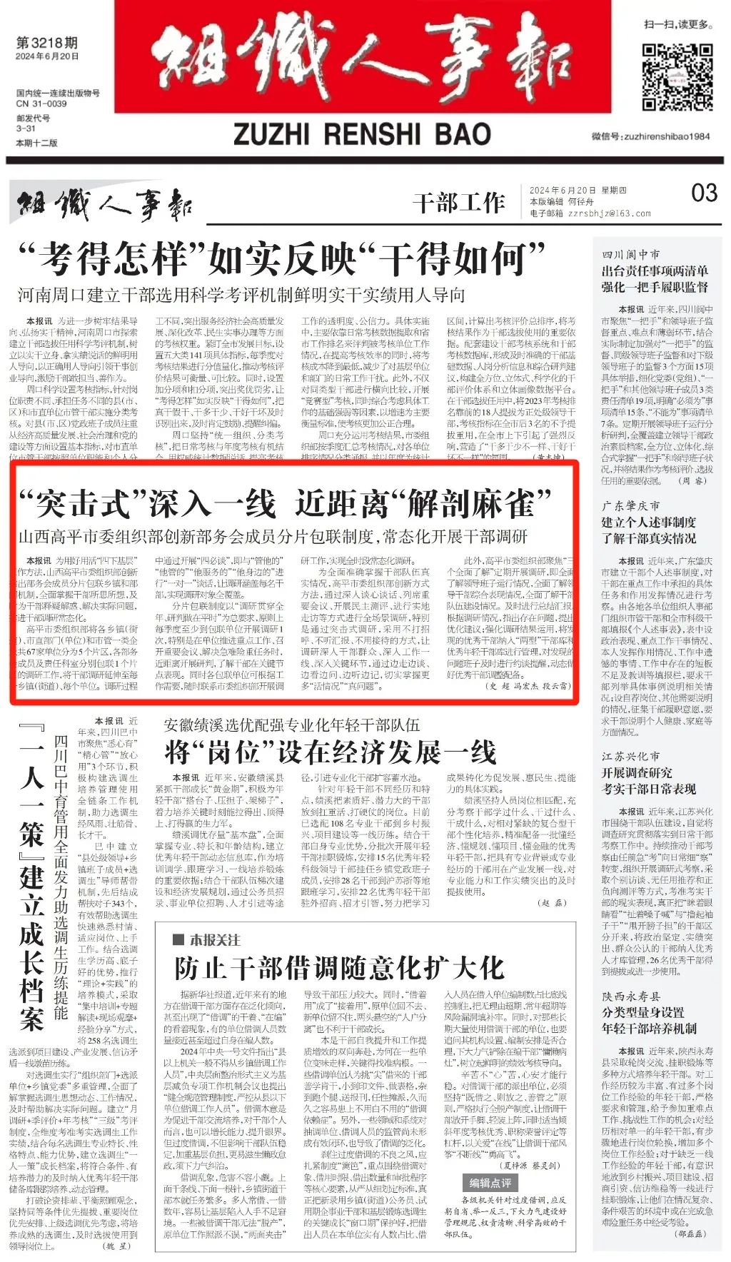 《组织人事报》关注高平:“突击式”深入一线 近距离“解剖麻雀”
