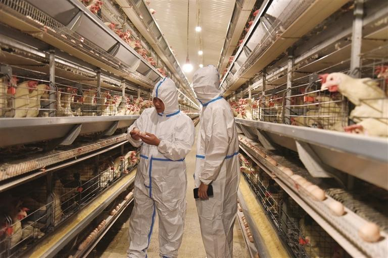 在一系列现代化设备的“帮助”下,蛋鸡住进了“空调房”,一个个鸡蛋则通过传送带乘上“电梯”,直接来到装蛋区,经消毒、筛选、分拣后装箱,展现了当下智能化蛋鸡养殖的新场景。该养殖场负责人龙辉说:“目前,我们基地蛋鸡存栏有8万只,每天产蛋7.2万枚,年产鲜鸡蛋300吨左右,产值约1500万元。下一步还打算扩大养殖规模,争取年蛋鸡存栏量扩大到14万只,带动更多群众增收。”