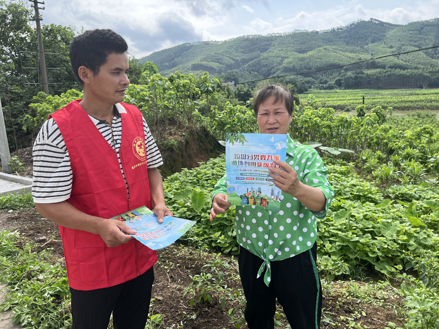 志愿者到石门村向群众普及垃圾分类知识(韦姗甜?摄)