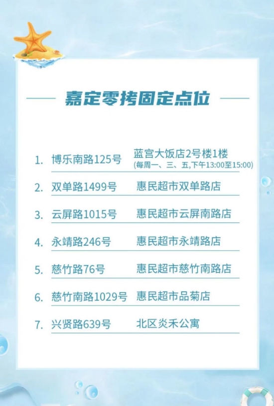 “未来这一特色服务不仅将走进各个我嘉·邻里中心,还将进入嘉定各社区,在布局上更灵活、更便捷。”上汽活动中心零拷项目负责人介绍,目前嘉定区已有7家“零拷”固定点位正常营业,感兴趣的居民可以就近前往以下销售点“打卡”,后续“零拷”点还将引进平价洗衣皂、清洁剂,以及“蜂花”“上海药皂”等老字号的创新产品进行销售,方便居民采购。