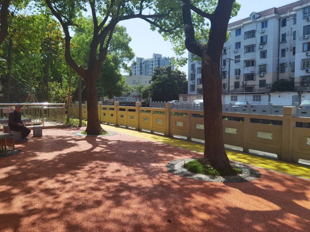 值得一提的是,经过空间重新规划利用,迎园五、八坊的沿河口袋公园也同步建设完成并对外开放,居民活动空间从原先一块“弹丸之地”,扩展到这块长约270米的沿河口袋公园。