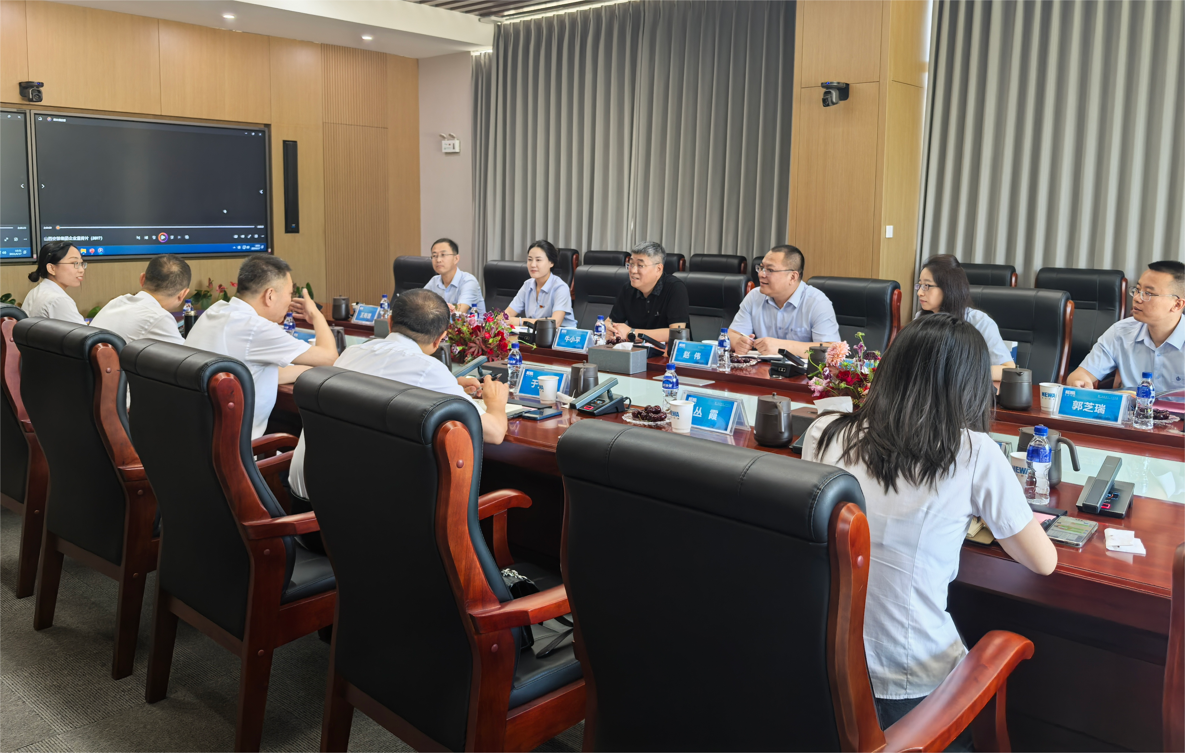 6月17日,集团党委委员、副总经理牛小平带队,山安碧泉领导班子赴烟台金正环保科技有限公司开展对标交流,烟台金正环保科技有限公司副总经理李辉热情接洽。