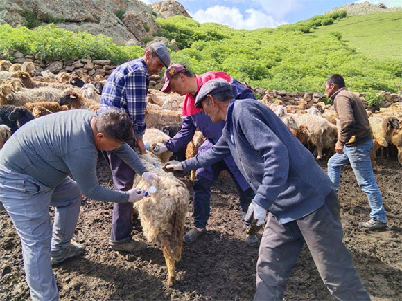 因部分农牧民已转入夏季草场,山路崎岖且偏远,走访入户组要提前一天赶至农牧民家中,了解牲畜数量,并进行登记记录,确保不漏一只羊一头牛。宣传组耐心指导农牧民如何正确接种疫苗,并与当地兽医站时刻保持联系,确保疫苗的质量和供应,全力保障农牧民利益。