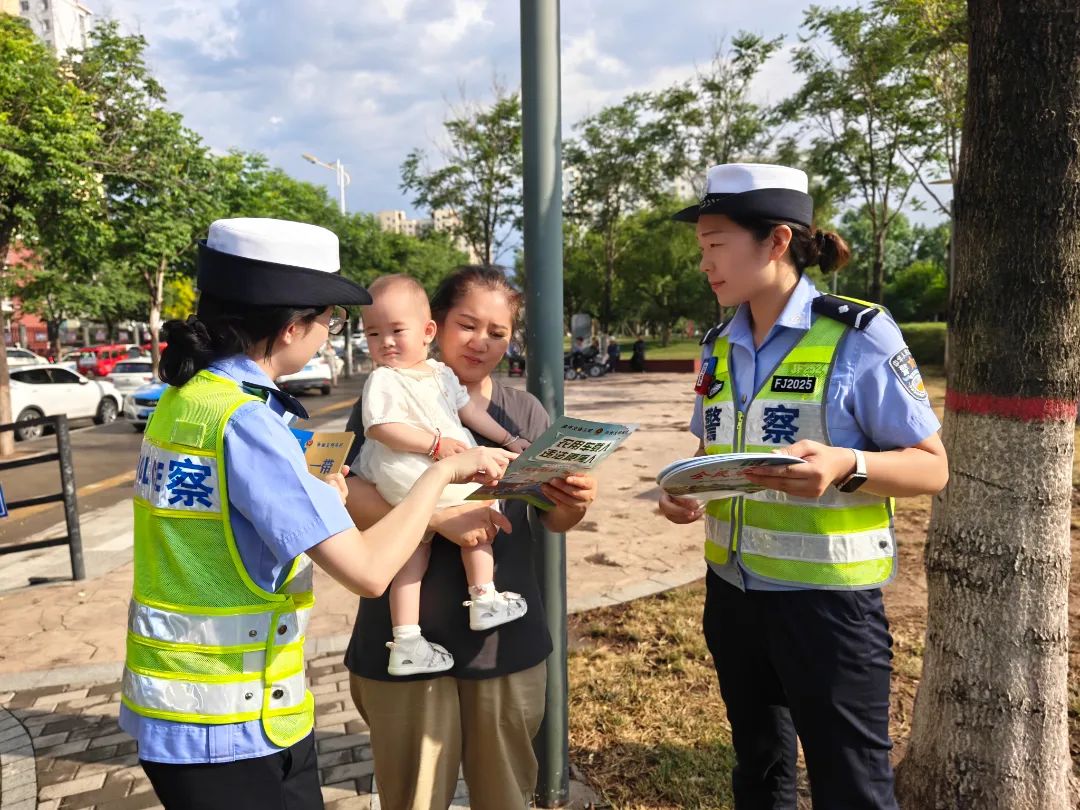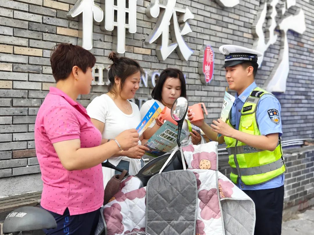 结合夏季出行特点,走进辖区广场、商场,向过往群众讲解交通安全常识,告诫居民群众提高自己的交通安全意识和自我保护能力,要从思想上重视交通安全,行动上遵守交通法律法规,养成良好的交通出行习惯,远离交通事故伤害。