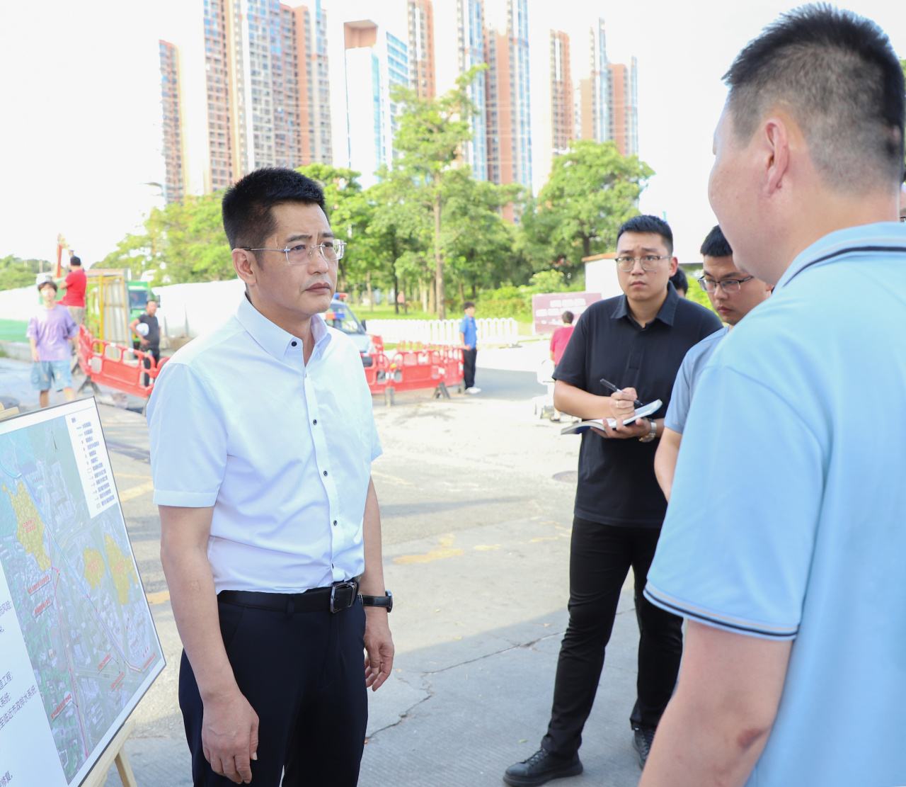 在华大街道法花美社区,高金全来到社区主入口易涝点积水改造项目和法花美排洪渠项目现场,对照工程设计图纸,或察看施工现场,或询问项目概况,了解近期内涝情况、积水改造工程和污水综合治理进展,以及下阶段施工安排,协调解决困难问题。他指出,要全力提速工程进度,倒排工期,进一步明确施工节点,把工程量细化到每日、每周、每月,科学增派施工力量,压茬实施,积极克服汛期等不利影响,确保项目按时完工投用。工程地下施工部分涉及单位多,要完善信息互通、快速联动的对接机制,做好施工方案交底,高效进场组织作业,密切协作配合,推动项目施工再提速再提效。要严守施工安全和工程质量底线,落实好规范施工、防暑降温、防尘降噪等各项要求,最大限度减少施工对群众生产生活的影响。