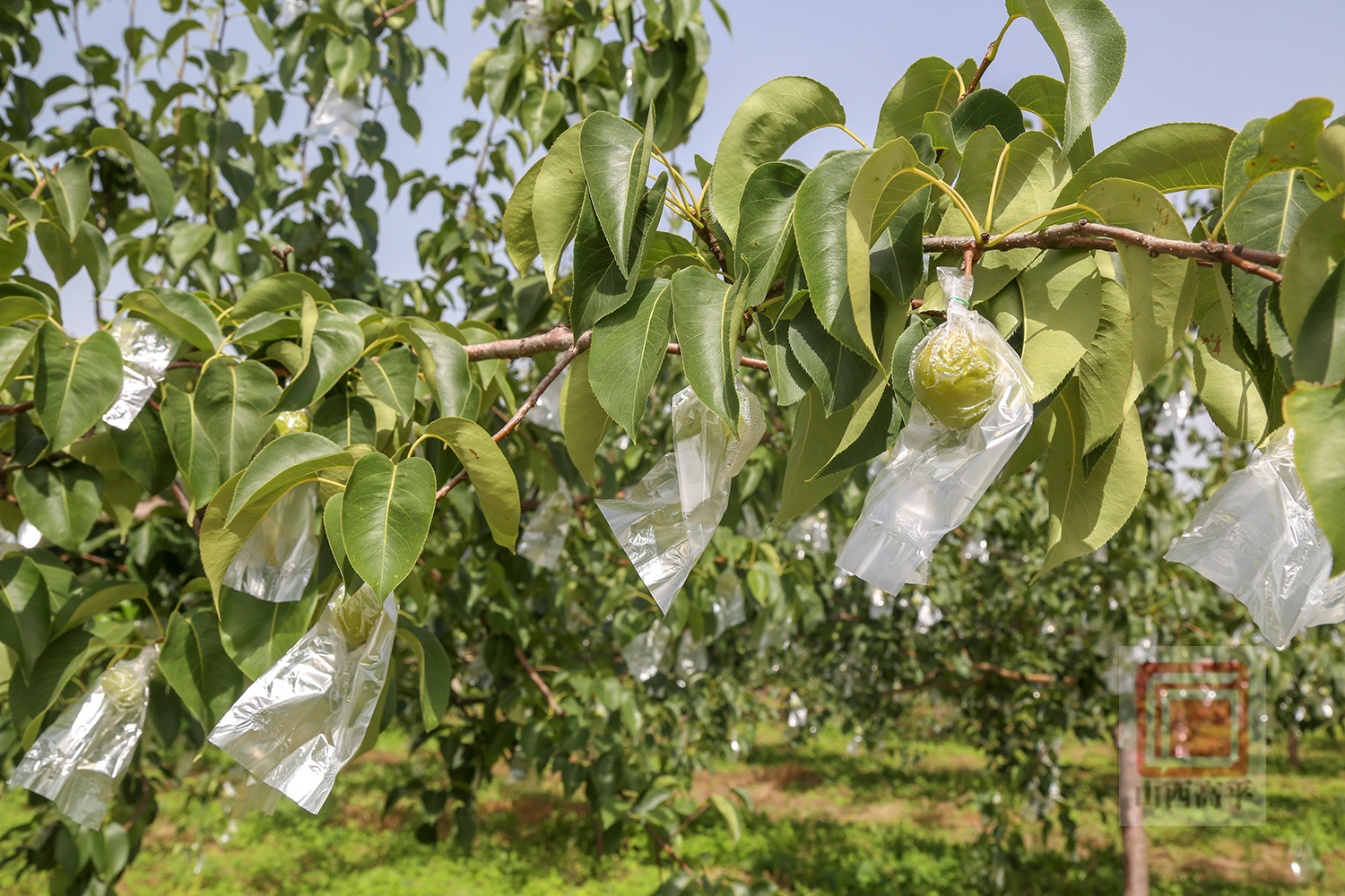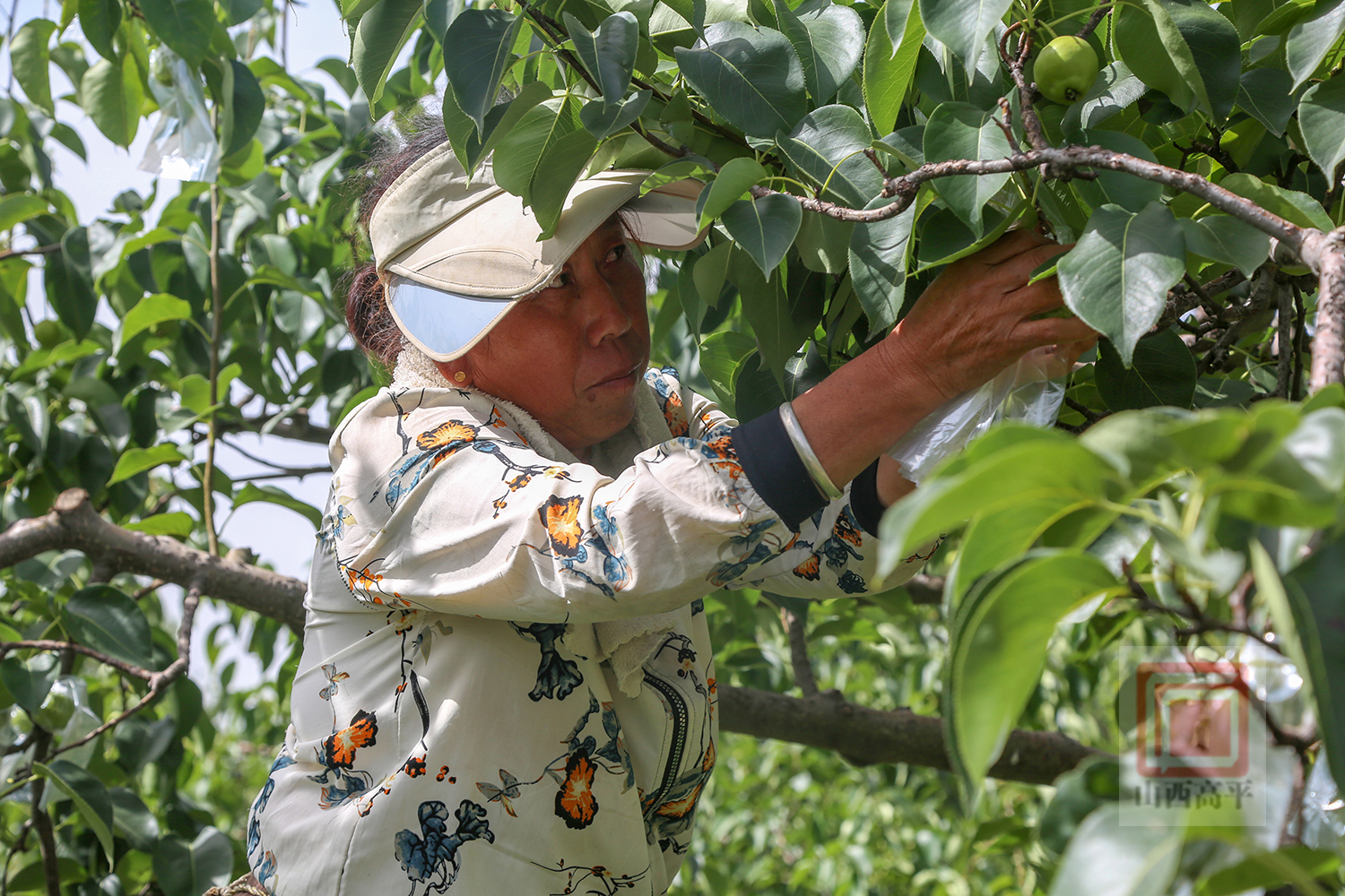 炎炎夏日,正是梨树壮果期。连日来,在我市南城街街道梨园村的朝胜专业合作社,果农们正抢抓梨树管护黄金期,为玉露香梨套袋穿“新外衣”,不断提升梨树管护质效,确保为今年玉露香梨的丰产丰收打牢基础。