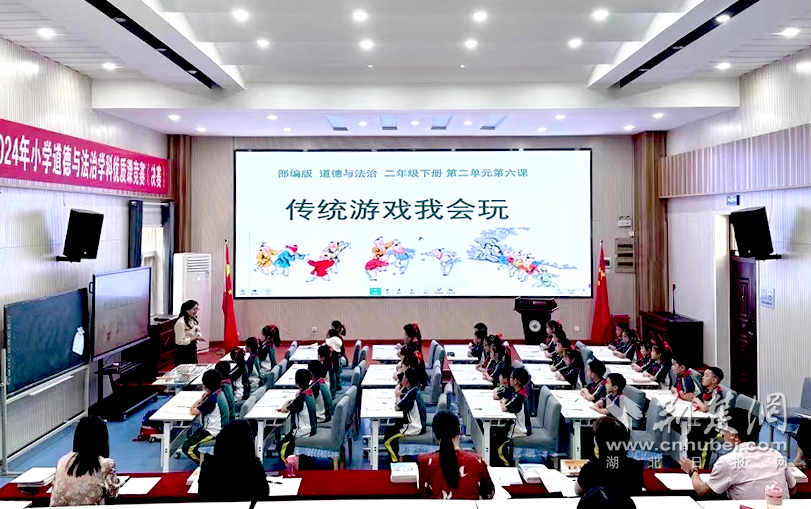 该区小学道德与法治学科竞赛活动也同步在武汉市东西湖区嘉禾园小学举行。围绕高质量将“二十大精神”融入小学思政课堂,各参赛老师运用生动案例、游戏互动、思政课3D资源,将抽象的内容转变为可听、可视、可感、可动手操作的多感官学习活动,提升思政课育人实效。