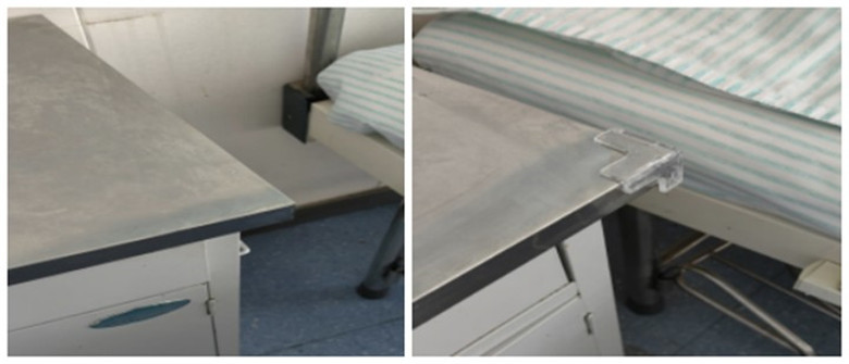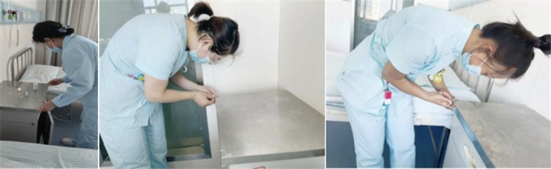 说做就做,护士长带领护理团队,对每一个病房中的床头柜四角处全部粘贴防撞垫,防撞垫采用了透明软垫材质,既保证了其防护效果,又不影响病房的美观和整洁。