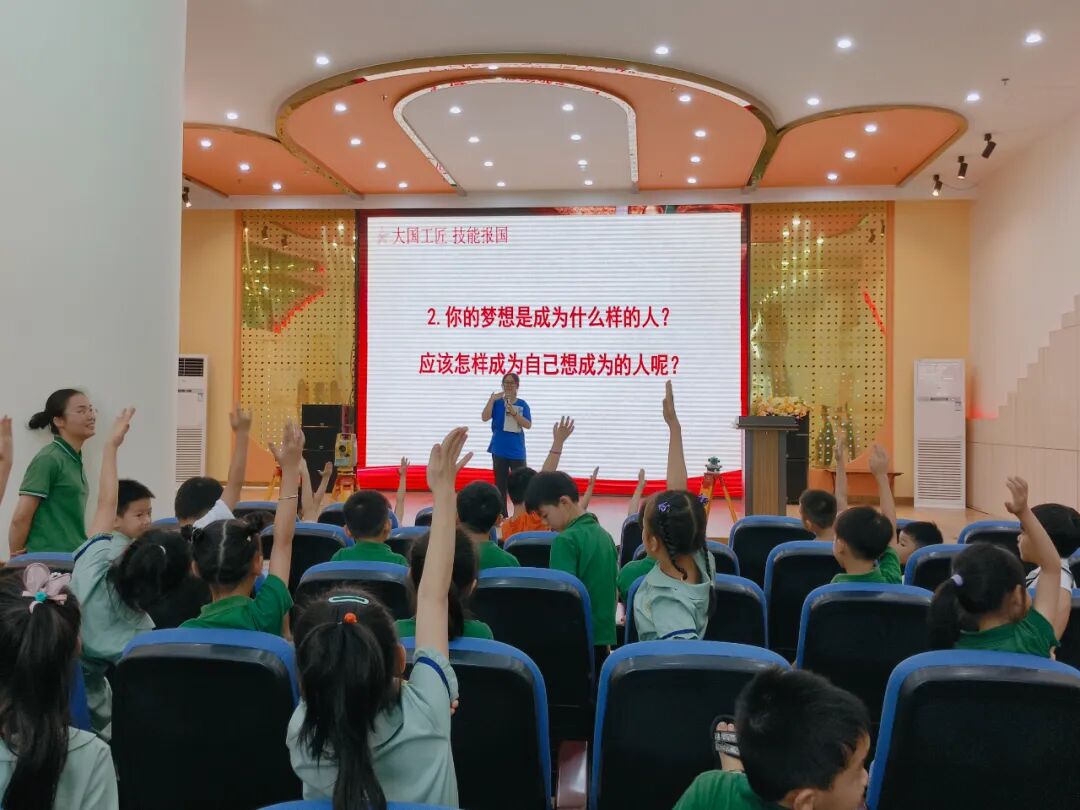 学生还通过PPT授课的形式,用图文并茂的课件和通俗易懂的语言生动地向孩子们介绍了平陆运河项目建设的重要意义。在知识问答环节中,学生和孩子们亲密互动,并为孩子们送上了精心准备的“工匠礼包”,孩子们踊跃举手回答问题,现场气氛十分活跃。
