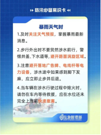 近日一定切记!雨具随身携带,穿防滑鞋更安全,回家注意地面,防止滑倒受伤,不在深水区域玩耍。
