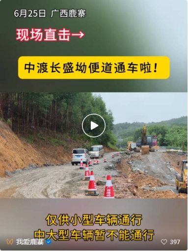 【直击中渡长盛坳】25日这天,中渡镇长盛坳通车了!
