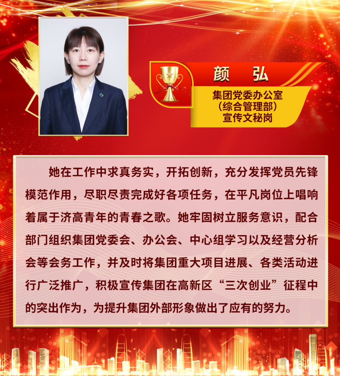 编者按:在高新区创业沃土上,有这样一群“先锋队”,他们坚持党建引领,秉持国企责任与担当,在平凡的岗位中做出了不平凡的业绩,用行动谱写着高新区“三次创业”的奋斗篇章。我们将陆续对荣获济高控股“五一劳动先锋岗”“五四青年先锋岗”的员工进行事迹展播,汲取力量,续写荣光。