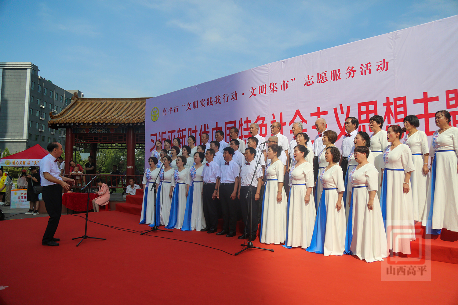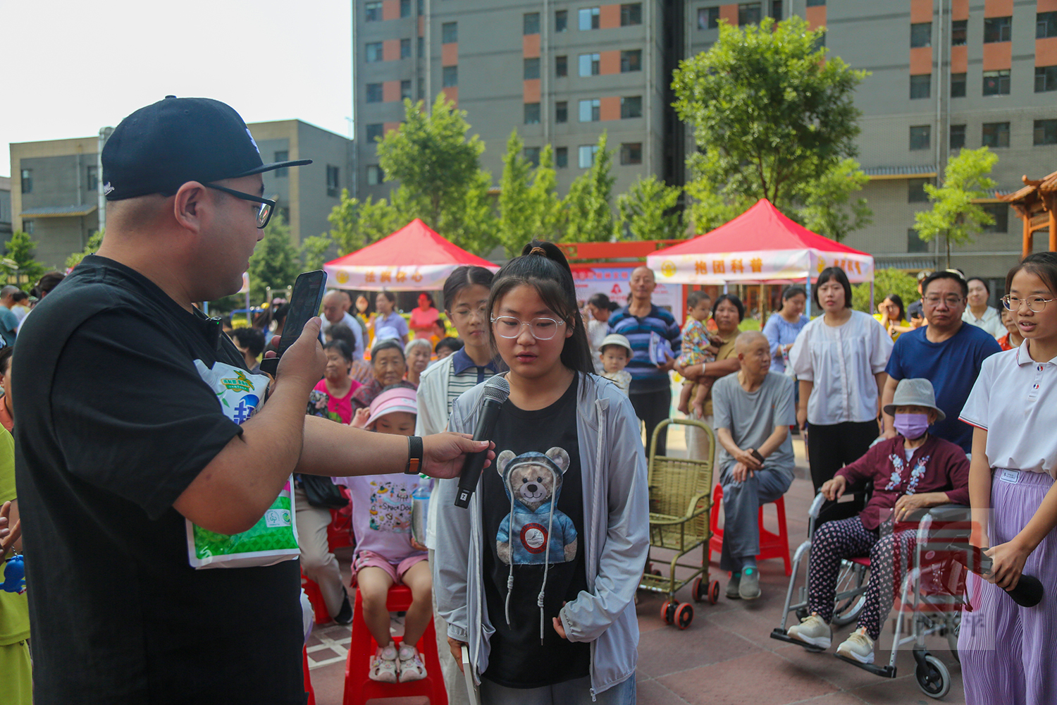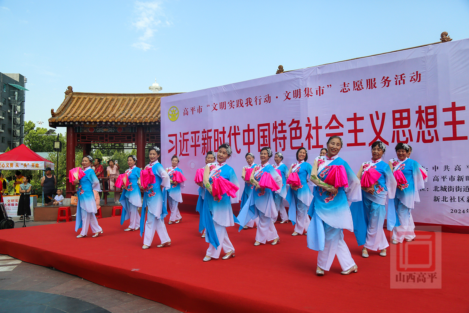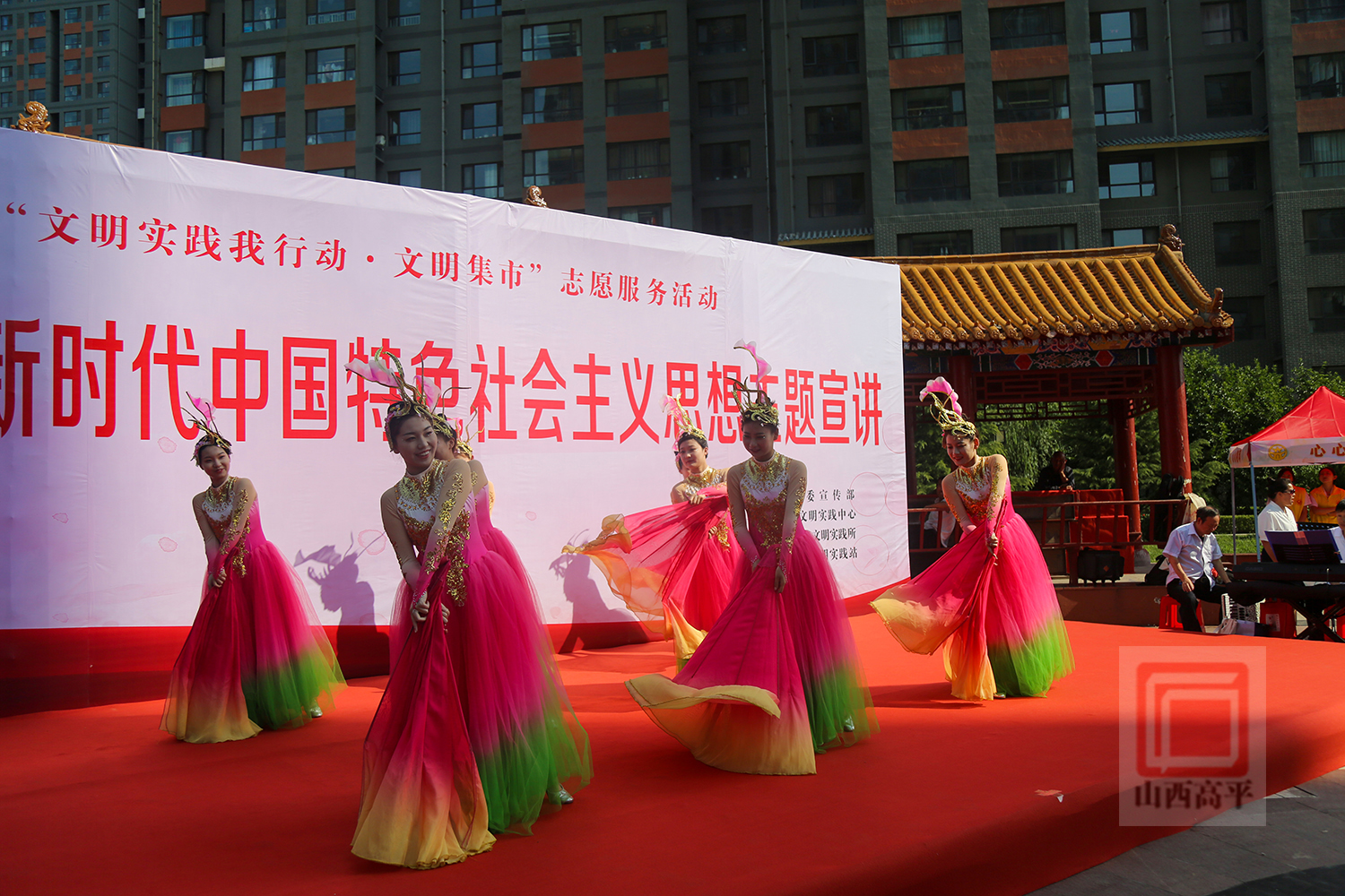 来到新北小区文化广场,人头攒动、热闹非凡。“文明实践我行动·文明集市”志愿服务活动在市委党校老师的理论宣讲中热闹开市。随后,舞蹈、合唱、小品、上党梆子等文艺节目轮番上演,精彩的演绎赢得现场观众阵阵掌声。文艺演出还穿插了有奖问答环节,广大居民踊跃参与,在寓教于乐、欢声笑语中推动文明实践融入群众生活、走进群众心坎,激发群众参与文明实践志愿服务的热情。