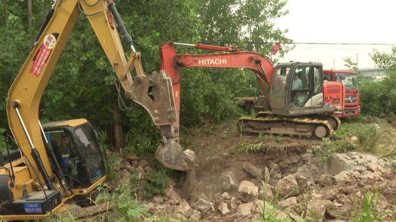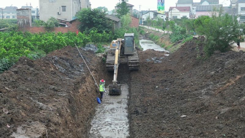 湖北楚曜水利水电工程有限公司施工员郑吉华介绍:“我们的第一个作业面是在马店低排渠,全长179米,现在正在进行基础开挖、垫层浇筑和挡土墙装模。第二个工地是在江口的东灌渠,正在拆除旧的节制闸和分水闸,准备重建新闸。”