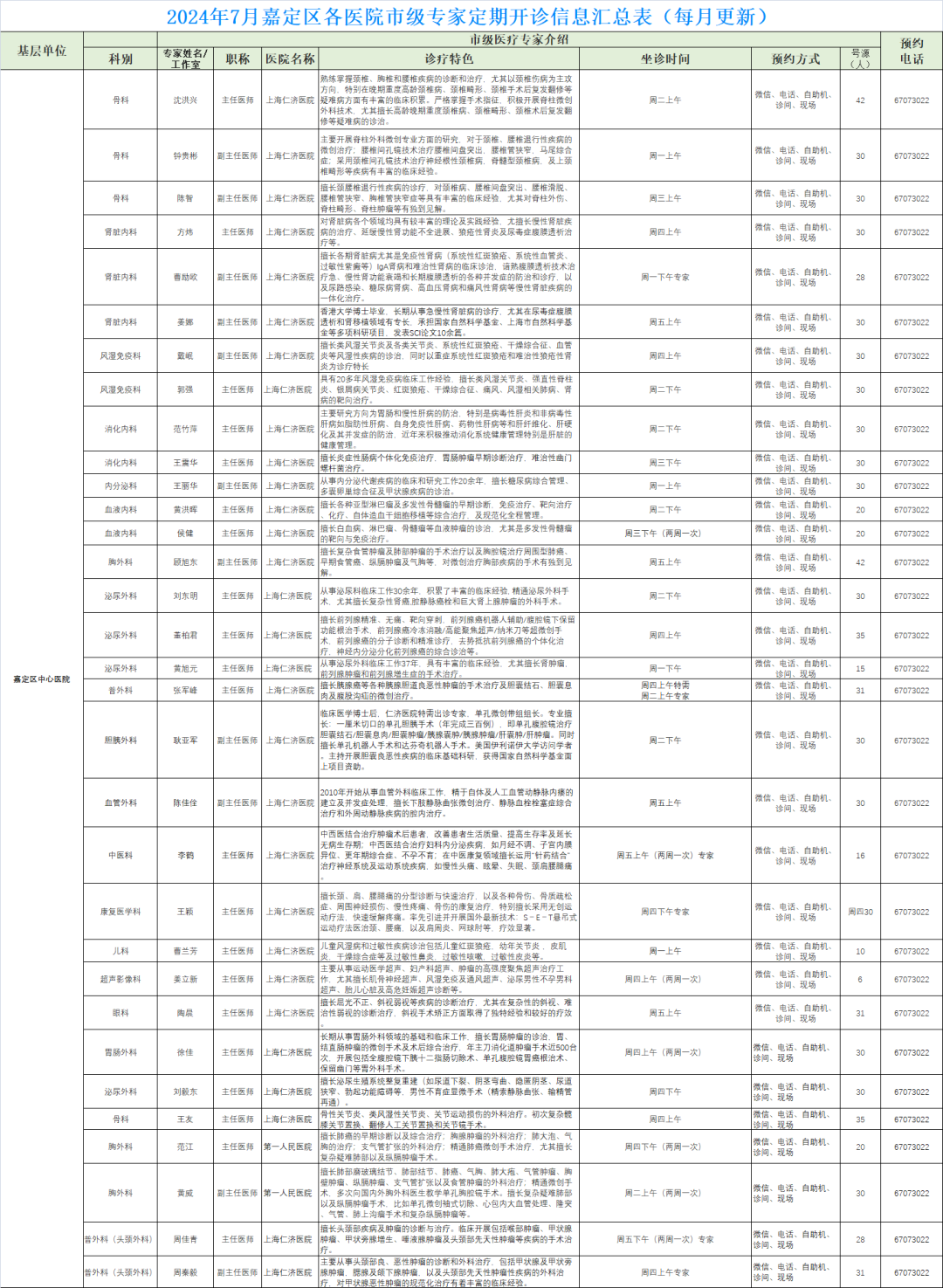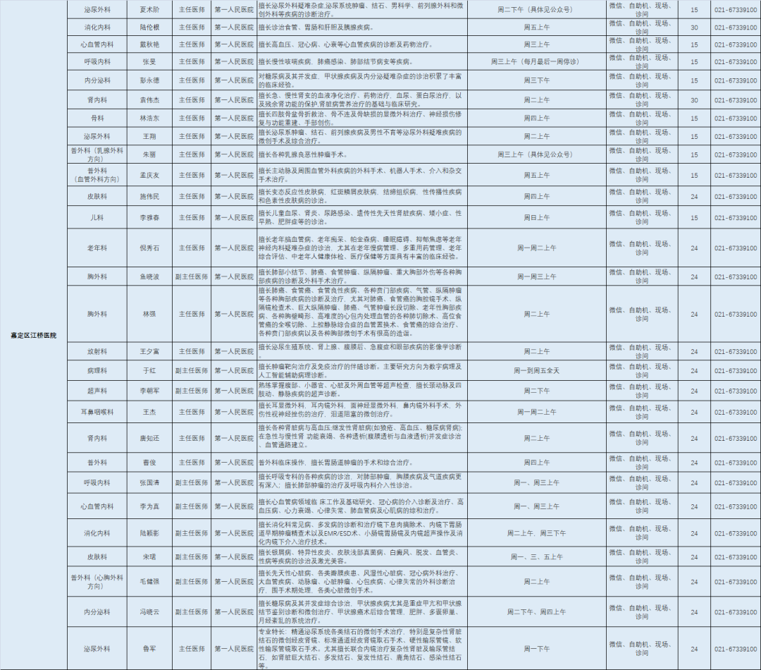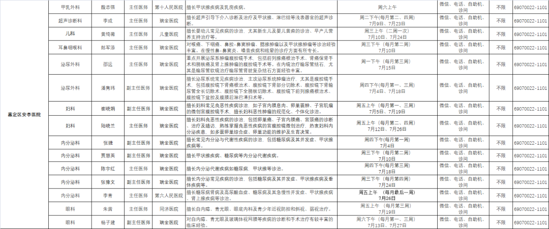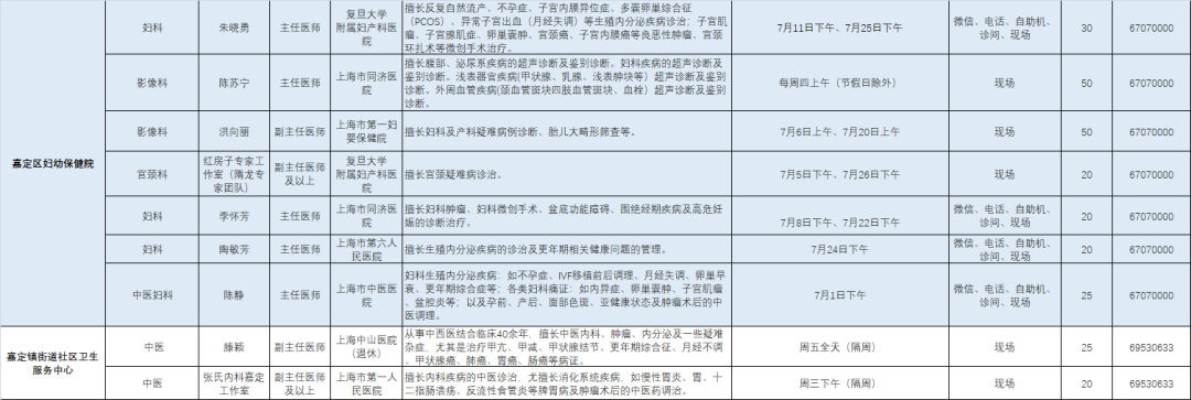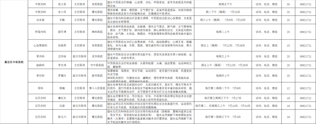 嘉定区各医院市级专家7月定期开诊信息来啦