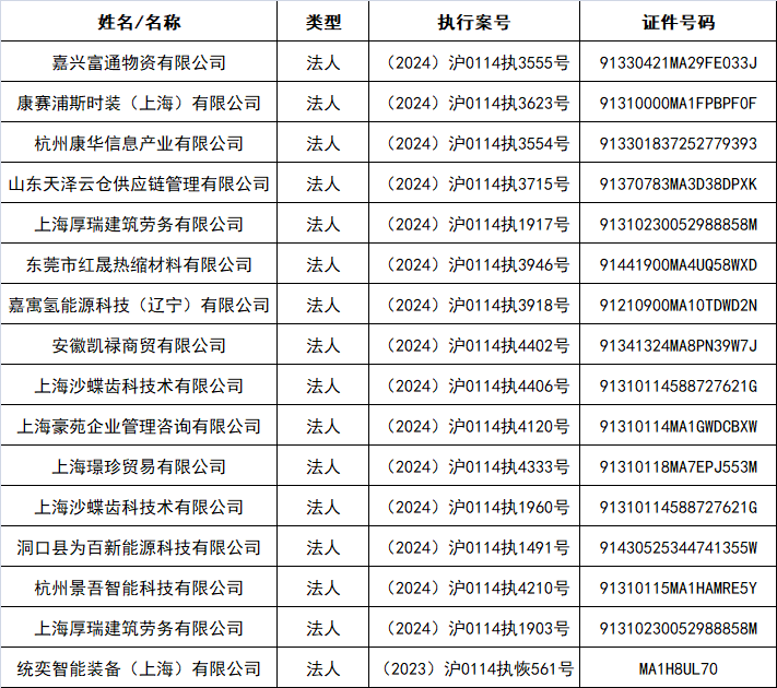 嘉定法院公布一批失信被执行人名单